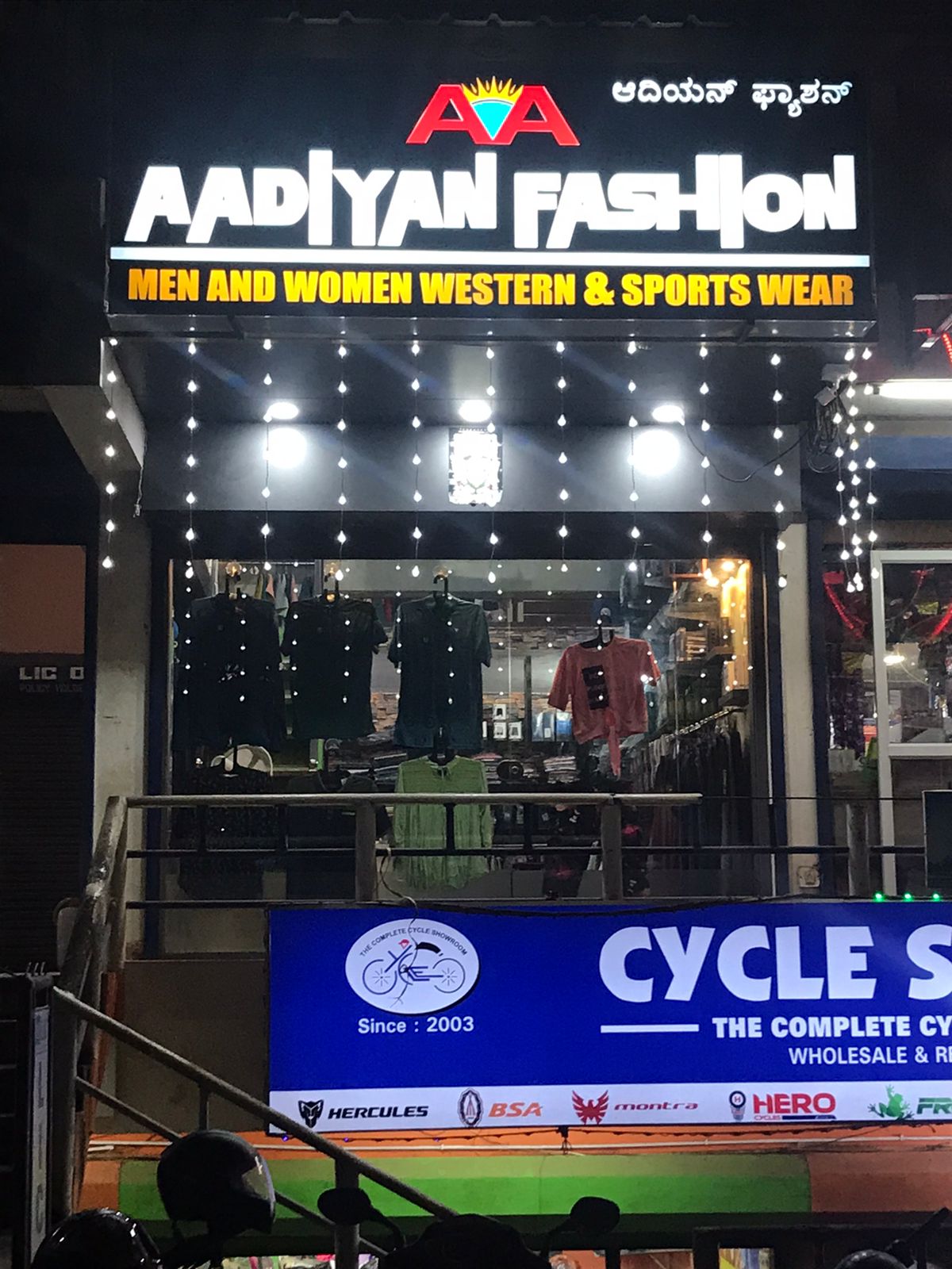 0 (0) AADIYAN FASHION : Ground Floor, Nalanda Complex, Opp Police Station, Surathkal, Mangalore : : : 6364679718 MENS BOUTIQUE, LADIES BOUTIQUE, SPORTS WEAR, WESTERN WEAR, TIMINGS : 9.30AM TO 8.30PM Did you find this Ad helpful? Click on a star to ra...