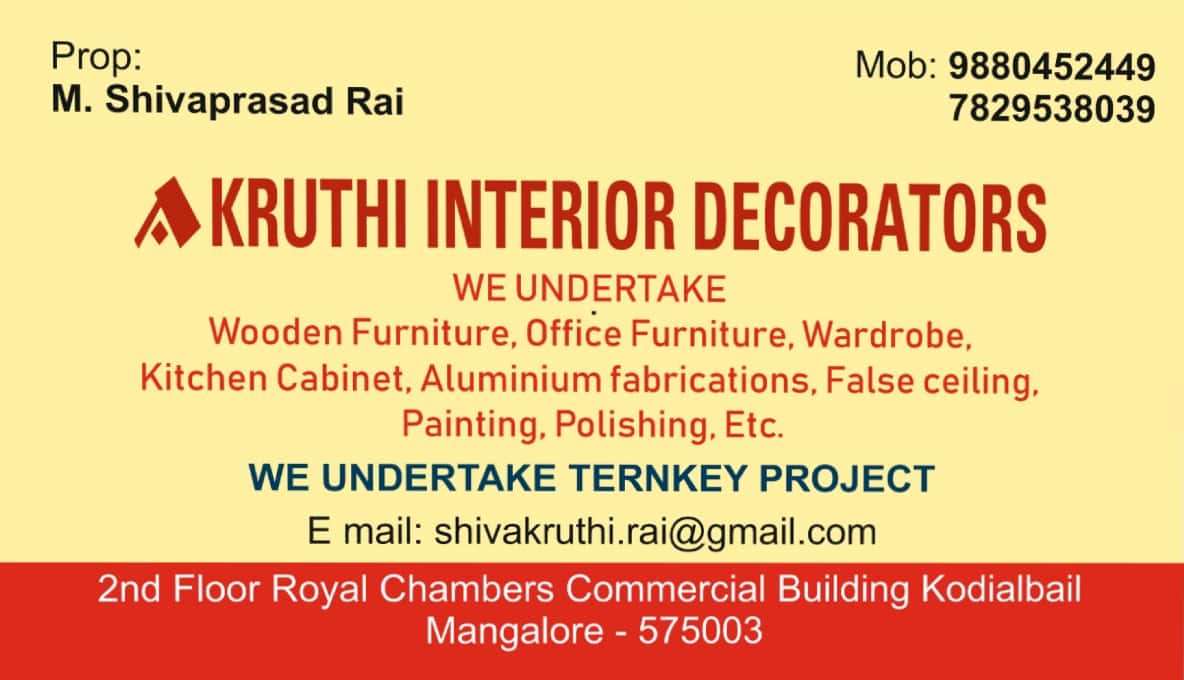 INTERIOR DESIGNER, MODULER KITCHEN, FALSE CEILING, ALUMINIUM ABRICATION, PAINTING, POLISHING, TIMINGS ; 8.30AM TO 6.00PM