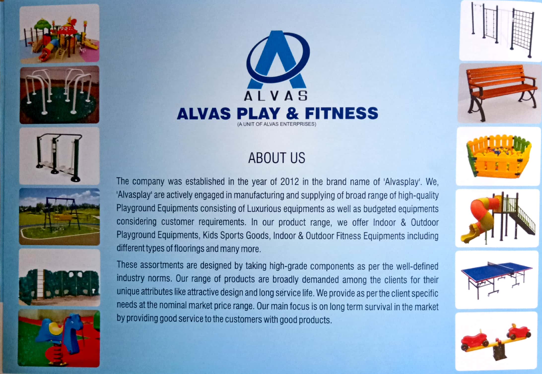 5 (1) ALVAS PLAY & FITNESS : Ballal Industrial Estate,Yeyyadi, Mangalore : : : 9481140726 MANUFACTURERS OF PLAYGROUND, FITNESS EQUIPMENTS & OPEN GYM EQUIPMENT Did you find this Ad helpful? Click on a star to rate it! Submit Rating Thank you ...