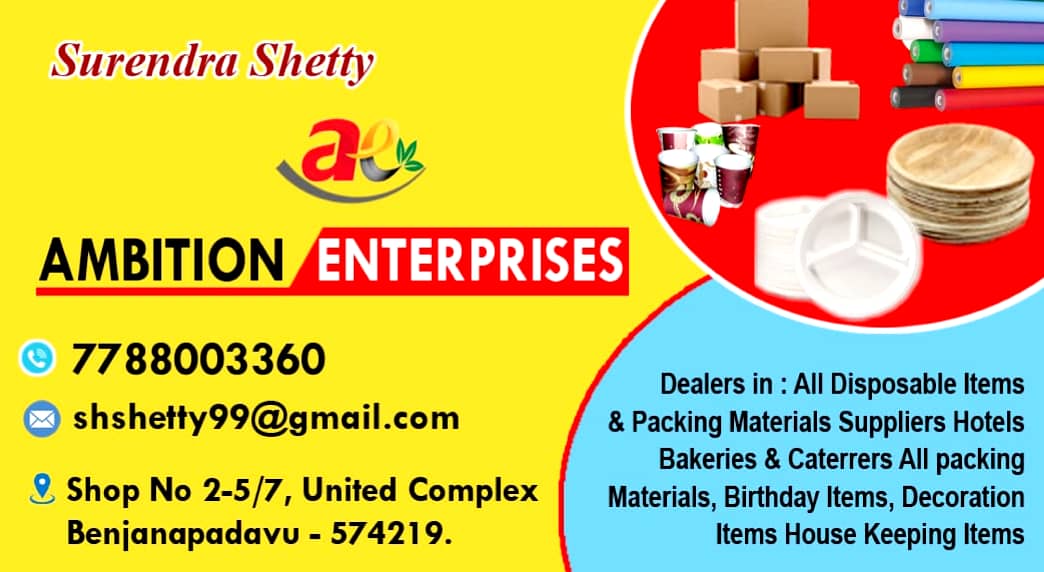 0 (0) AMBITION ENTERPRISES : Ground Floor, United Complex, Near Bustand, Benjanapadavu. : : : 8169799288, 9148630642 XROX, MONEY TRANSFER, STATIONARY, TICKET BOOKING.TIMINGS : 8.30AM TO 8.30PM. Did you find this Ad helpful? Click on a star to rate i...
