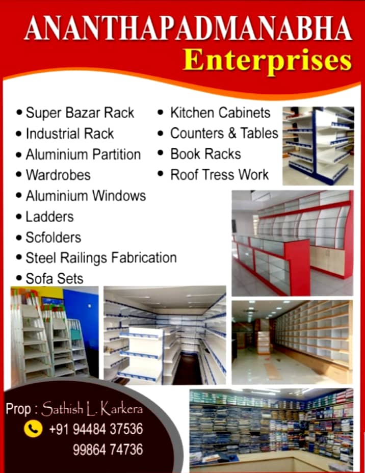 INDUSTRIAL RACKS, SUPER MARKET RACKS DEALER, DISPLAY RACK DEALER, ALUMINIUM FABRICATION, INTERIOR DESIGNER, FALSE CIELING. TIMINGS : 9.00AM TO 9.00PM