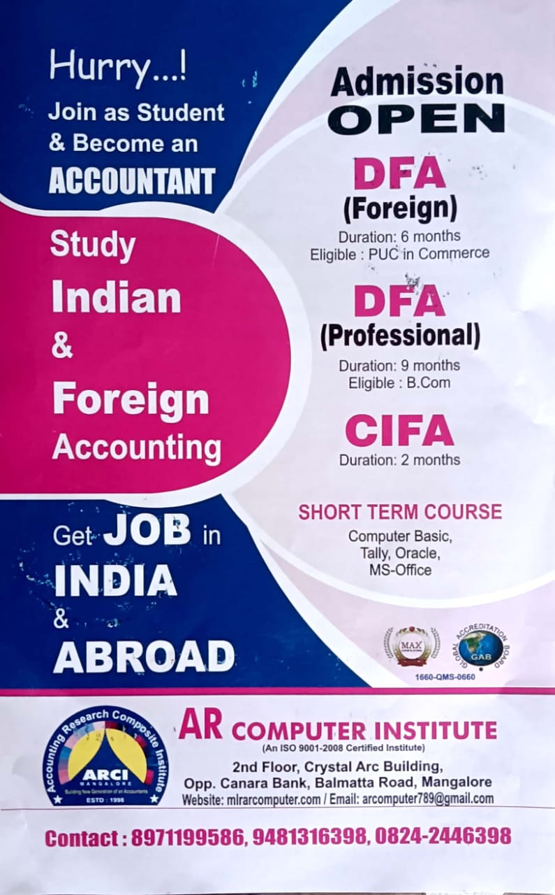 COMPUTER INSTITUTE, ACCOUNTANCY COURSE.