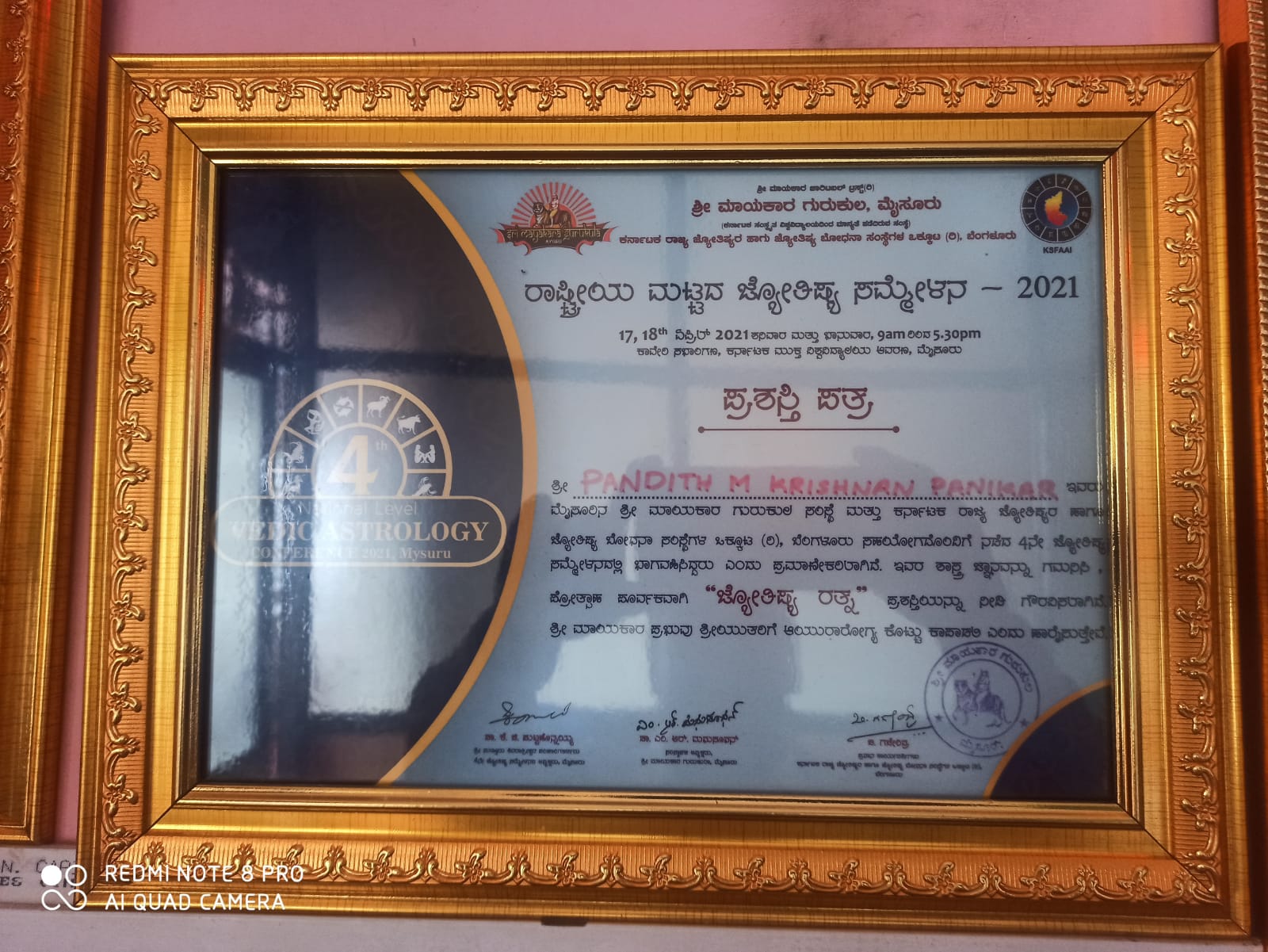 RASTRIYA AWARD WINNER KERALA SHREE CHOTANIKARAMMA ASTROLOGER Sri M Unnikrishnan Panikar