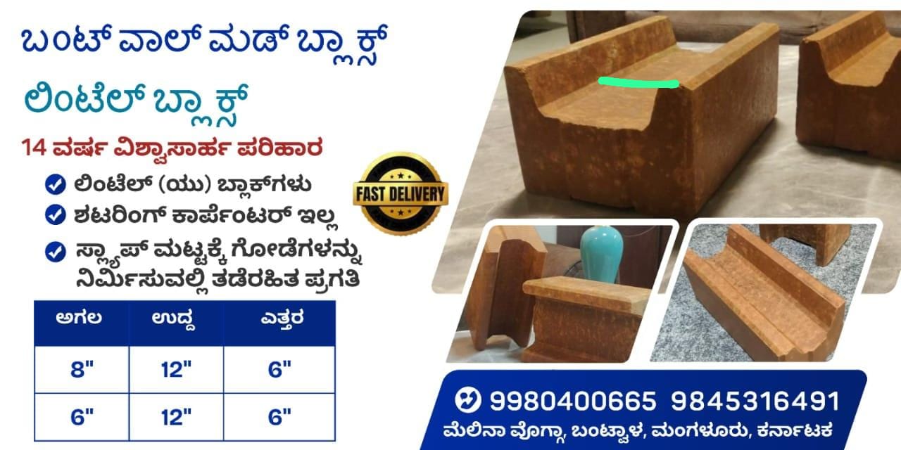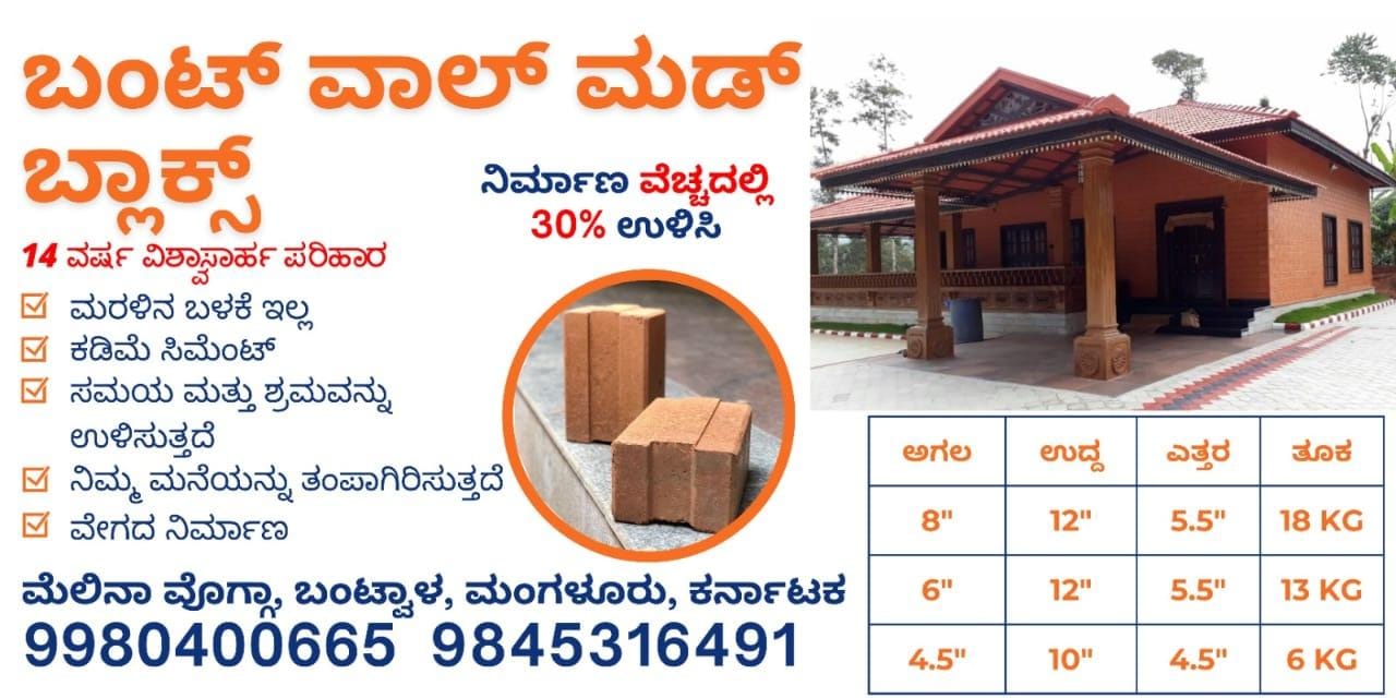 0 (0) BANTWAL MUD BLOCKS : Kodabettu, Vogga, Bantwal, : : : 9980400665, 9845316491 MUD BLOCKS Did you find this Ad helpful? Click on a star to rate it! Submit Rating Thank you for Voting! No votes so far! Be the first to rate this ad. We are sorry that this ad