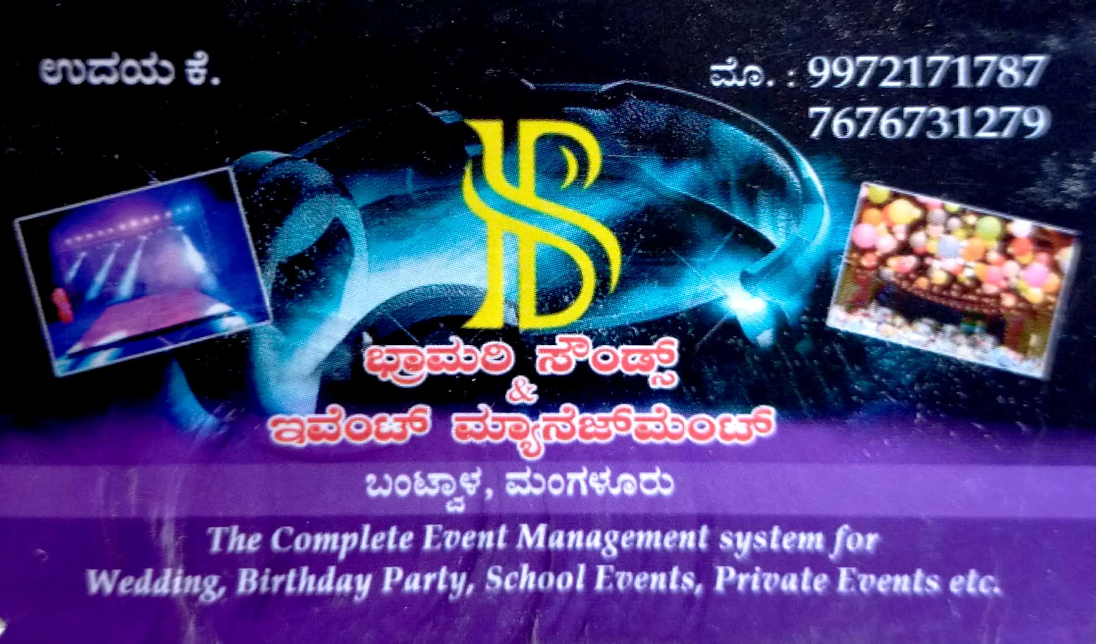 0 (0) BHRAMARI SOUNDS & EVENT MANAGEMENT : Karanki, Moodanadugod, Bantwal : : : 9972171787, 7676731279 EVENT ORGANIZER, EVENT MANAGEMENT Did you find this Ad helpful? Click on a star to rate it! Submit Rating Thank you for Voting! No votes so far...