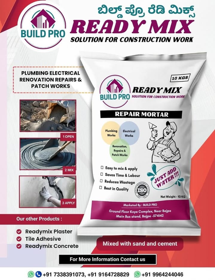 READY MIX PLASTER, REPAIR MOTOR, TILE ADHESIVE, REDYMIX CONCRETE, ULTRA TECH CEMENT.TIMINGS : 8.30AM TO 5.00PM, SUNDAY HOLIDAY.