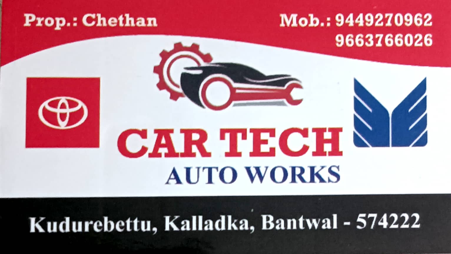 5 (1) CAR TECH AUTO WORKS : Near Samudra Veg Restaurant, Kudurebettu, Kalladka, Bantwal.574222 : : : 9663766026, 9449270962 GARAGE, AUTO WORKS, TIMINGS : 9.00AM TO 7.00PM Did you find this Ad helpful? Click on a star to rate it! Submit Rating Thank y...