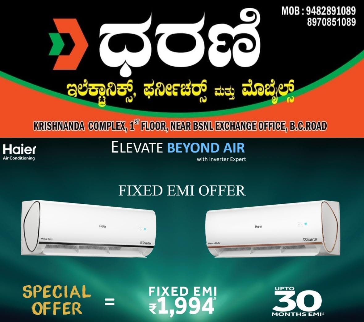 0 (0) DHARANI ELECTRONCS & FURNITURES : 1st Floor, Krishananda Complex, Near BSNL Exchange Office, BC Road, Bantwal. : : : 9482891089, 8970851089 ELECTRONICS, FURNITURE, HOME APPLIANCES, MOBILE, SOLAR, UPS, BATTERY.TIMINGS : 10.00AM TO 7.30PM, SU...