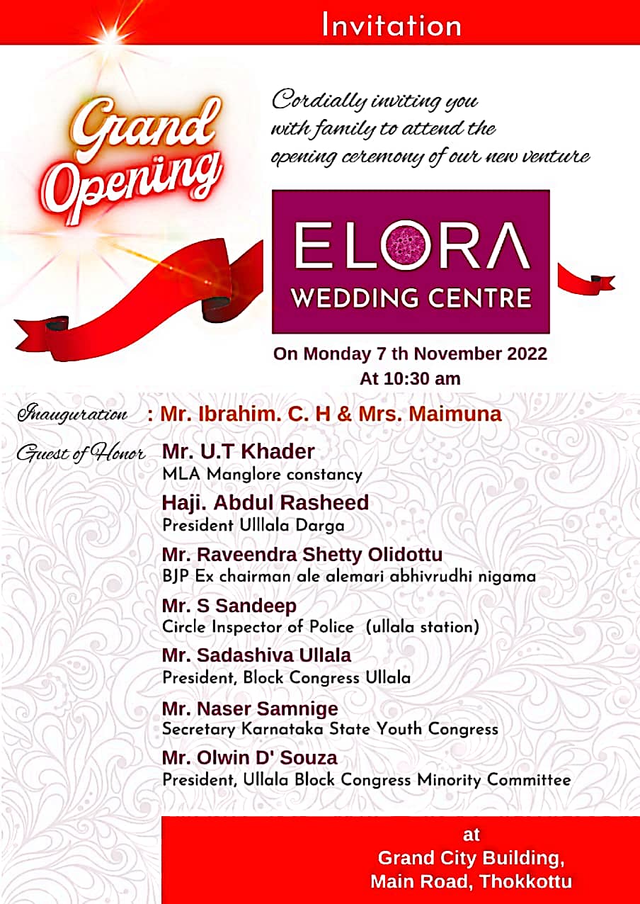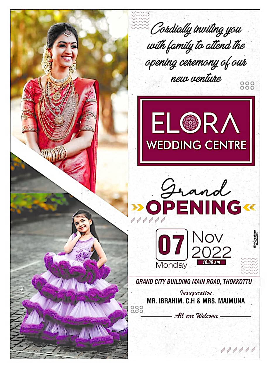 0 (0) ELORA WEDDING CENTRE : Ground Floor, Grand City Building, Thokkottu, Mangalore : : : 9747361000 WEDDING BOUTIQUE, WEDDING CENTRE, LADIES BOUTIQUE, KIDS BOUTIQUE, MENS BOUTIQUE, TIMINGS ; 9.00AM TO 9.00PM Did you find this Ad helpful? Click on a...