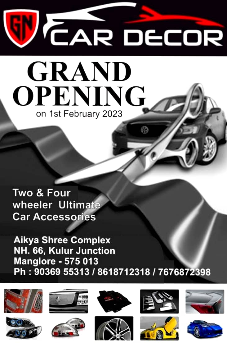 0 (0) GN CAR DECOR : Aikya Shree Complex, NH66, Kulur Junction, Mangalore 575013 : : : 9036955313, 8618712318, 7676872398 CAR ACCESSORIES, TIMINGS : 8.30AM TO 8.30PM, SUNDAY : 8.30AM TO 2.00PM Did you find this Ad helpful? Click on a star to rate it!...