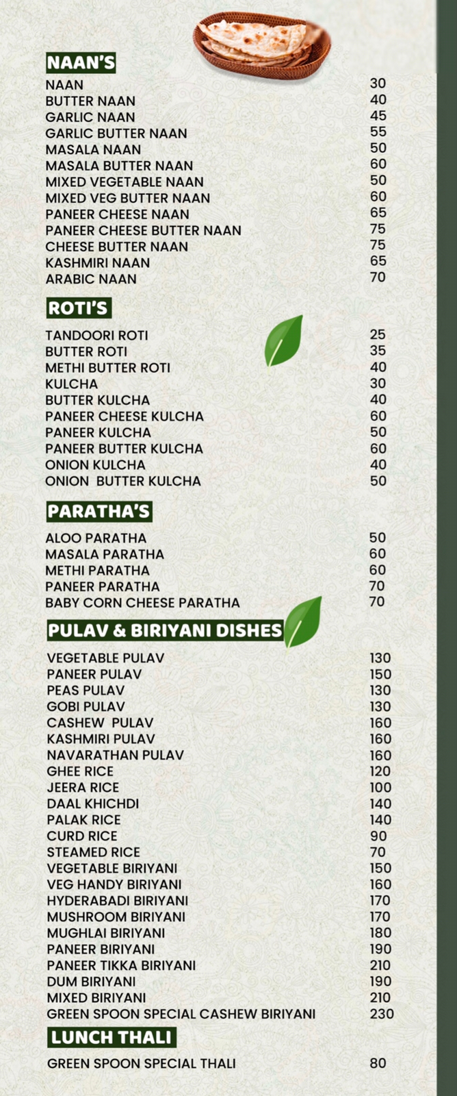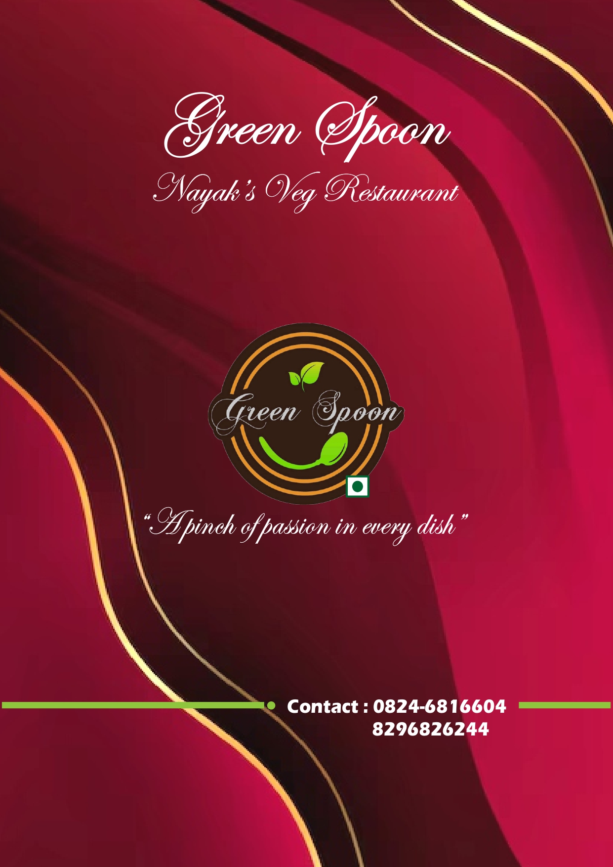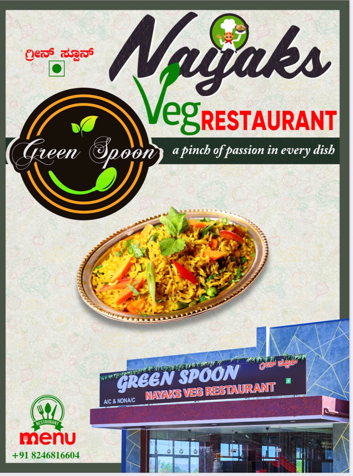 4.8 (6) GREEN SPOON NAYAKS VEG RESTAURANT : Opp Rosa Mystica School, Gurupura Kaikamba, Mangalore : : : 8296826244, 0824- 6816604 PURE VEG RESTAURANT, FAMILY RESTAURANT, TIMINGS : 8.00AM TO 10.30PM Did you find this Ad helpful? Click on a star to rat...