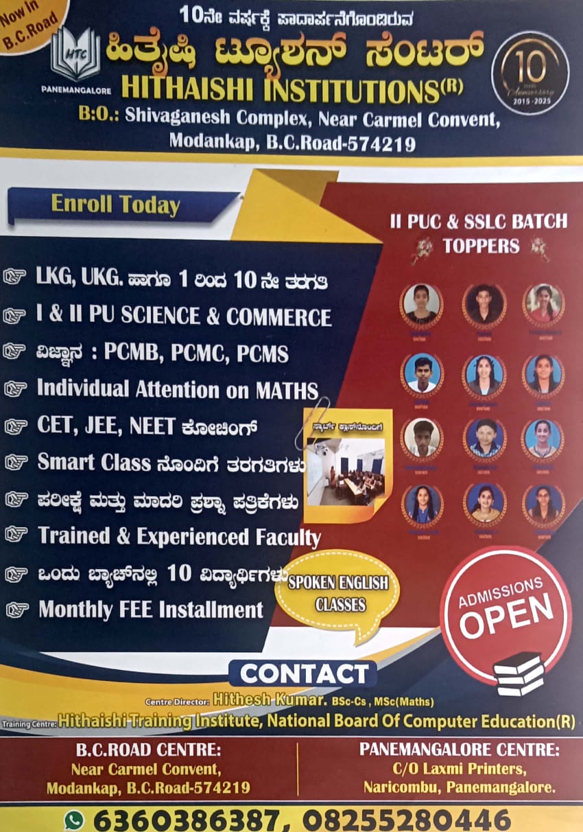 : 1st Floor, Shiva Ganesh Complex, Near Carmel Convent, Modankap, BC Road.574219