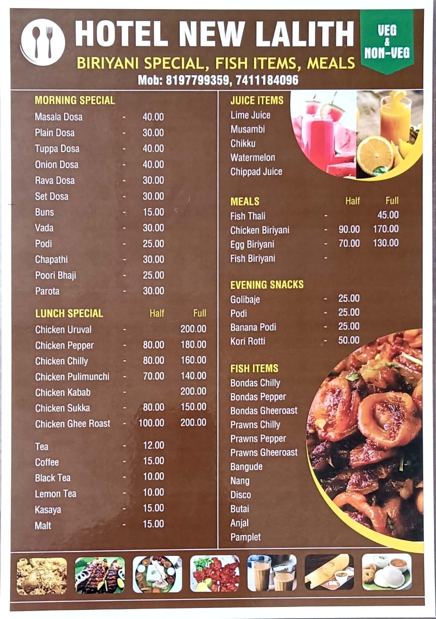 1 (1) HOTEL NEW LALITH : Basement Floor, Bejai Church Complex, Bejai, Mangalore : : : 8197799359, 7411184096 RESTAURANT, HOTEL, HOME DELIVERY, CITY LIMIT. BRAKFAST, LUNCH, DINNER. TIMINGS : 8.00AM TO 10.00PM Did you find this Ad helpful? Click on a s...