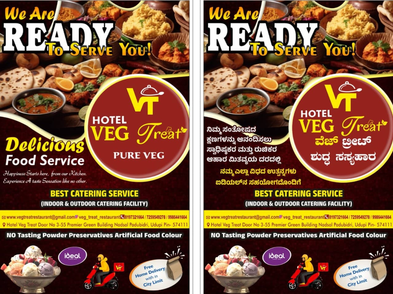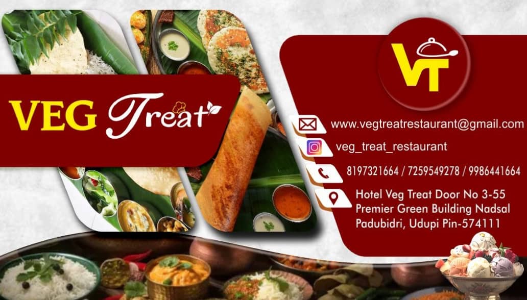 1 (1) HOTEL VEG TREAT : #3-55, NH66, Premier Green Building, Nadsal, Padubidri, Udupi, 574111 : : : 8197321664, 9986441664 VEG RESTAURANT, FAMILY RESTAURANT, CATERING, TIMINGS : 7.00AM TO 11.00PM, BREAKFAST, LUNCH, DINNER Did you find this Ad helpful...