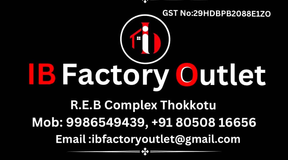 5 (1) I B FACTORY OUTLET : REB Commercial Complex, Near Rathnam Veg Restaurant, Thokkottu, Mangalore : : : 9986549439, 7892018359 MOBILES, ELECTRONICS, HOUSE HOLD ITEMS, KITCHEN WEAR, GIFT ITEMS, GROCERRY, CLEANING ITEMS.TIMINGS : 9.00AM TO 9.00PM. D...