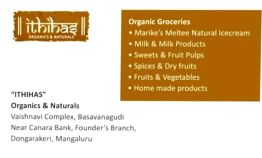 ORGANIC GROCERIES, MARLKES MELTEE NATURAL ICECREAM, MILK & MILK PRODUCTS, SWEETS & FRUIT PULPS, SPICES& DRY FRUITS, FRUITS & VEGETABLES, HOME MADE PRODUCTS,TIMINGS: 9.00AM TO 8.00PM,SUNDAY HOLIDAY