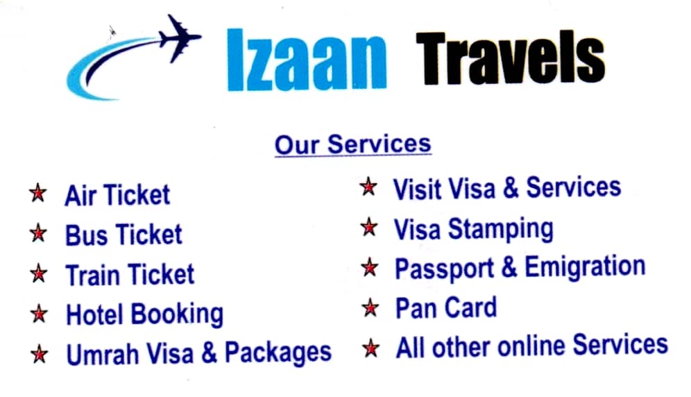 AIR TICKET, BUS TICKET, TRAIN TICKET, HOTEL BOOKING, UMRAH VISA & PACKAGES, VISIT VISA & SERVICE, VISA STAMPING, PASSPORT & EMIGRATION, PAN CARD, ALL OTHER ONLINE SERVICE, TIMINGS : 10.00AM TO 6.00PM, SUNDAY HOLIDAY