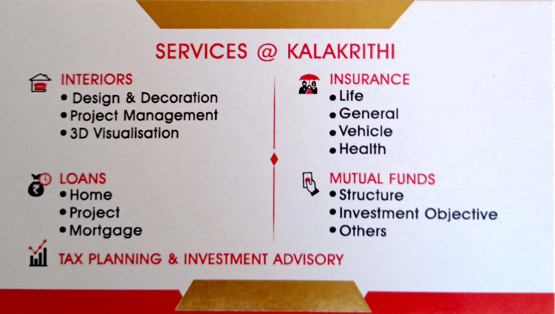 0 (0) KALAKRITHI : 1st Floor, Shreyas Chambers, Chilimbi, Urwa, Mangaluru – 575006 : kalakrithi.interiors@gmail.com : : 9480106570 INTERIOR, FINANCIAL SERVICE Did you find this Ad helpful? Click on a star to rate it! Submit Rating Thank you for...