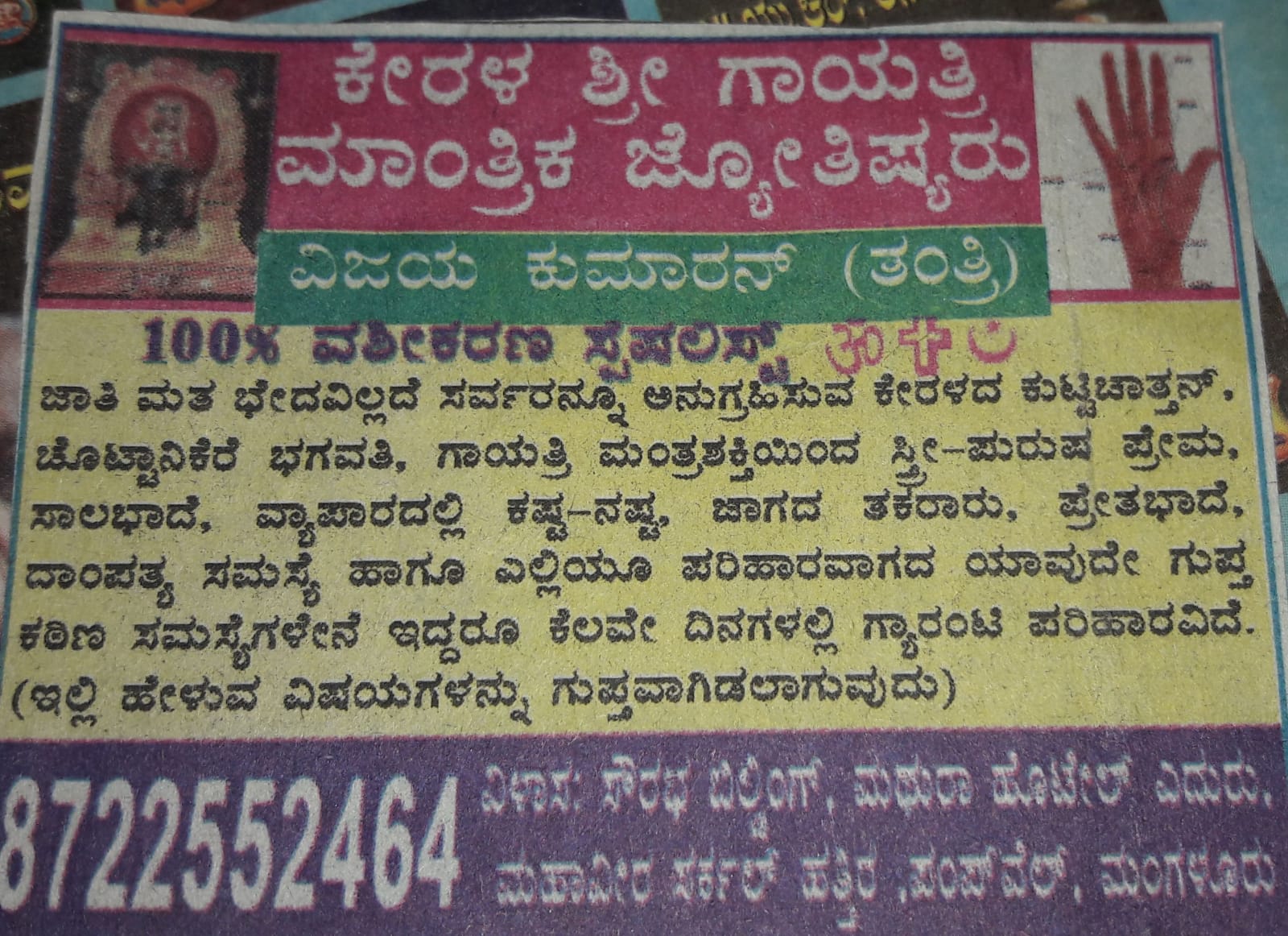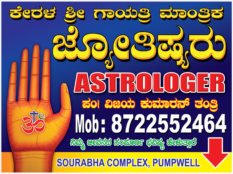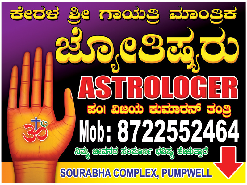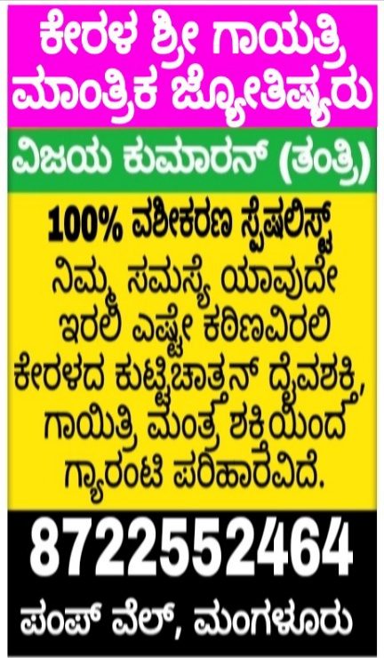 0 (0) KERALA SHRI GAYATHRI MANTHRIKA JYOTHISHYARU : Sourabh Complex, Near Mahaveer Circle, Pumpwell, Mangalore : : : 8722552464, 7892459157 ASTROLOGER Did you find this Ad helpful? Click on a star to rate it! Submit Rating Thank you for Voting! No vo...
