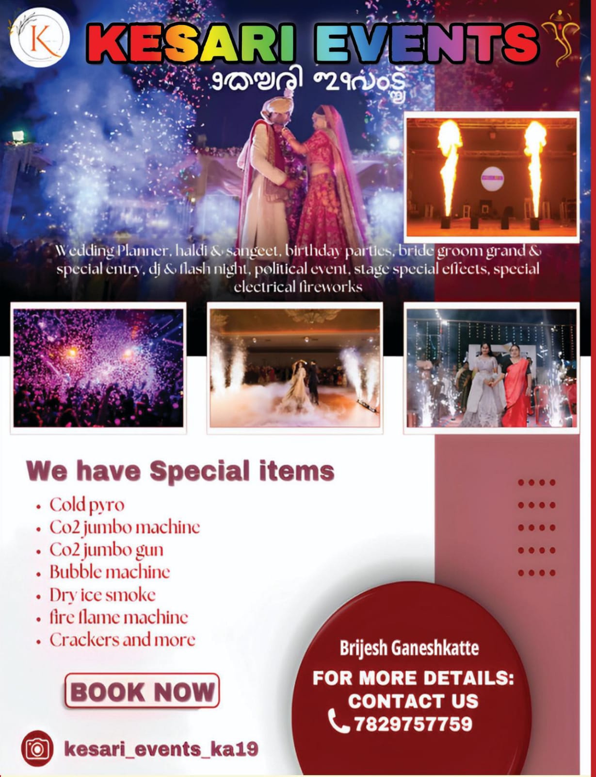 0 (0) KESARI EVENTS : 3rd Block, Katipalla, Ganesh Katte, Mangalore : : : 7829757759 EVENT ORGANIZER. Did you find this Ad helpful? Click on a star to rate it! Submit Rating Thank you for Voting! No votes so far! Be the first to rate this ad. We are sorry that this ad was not