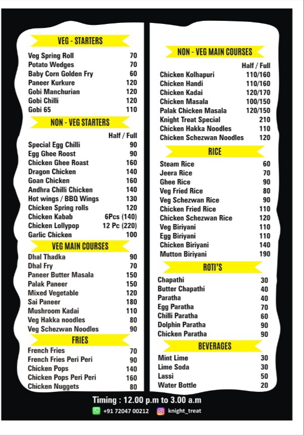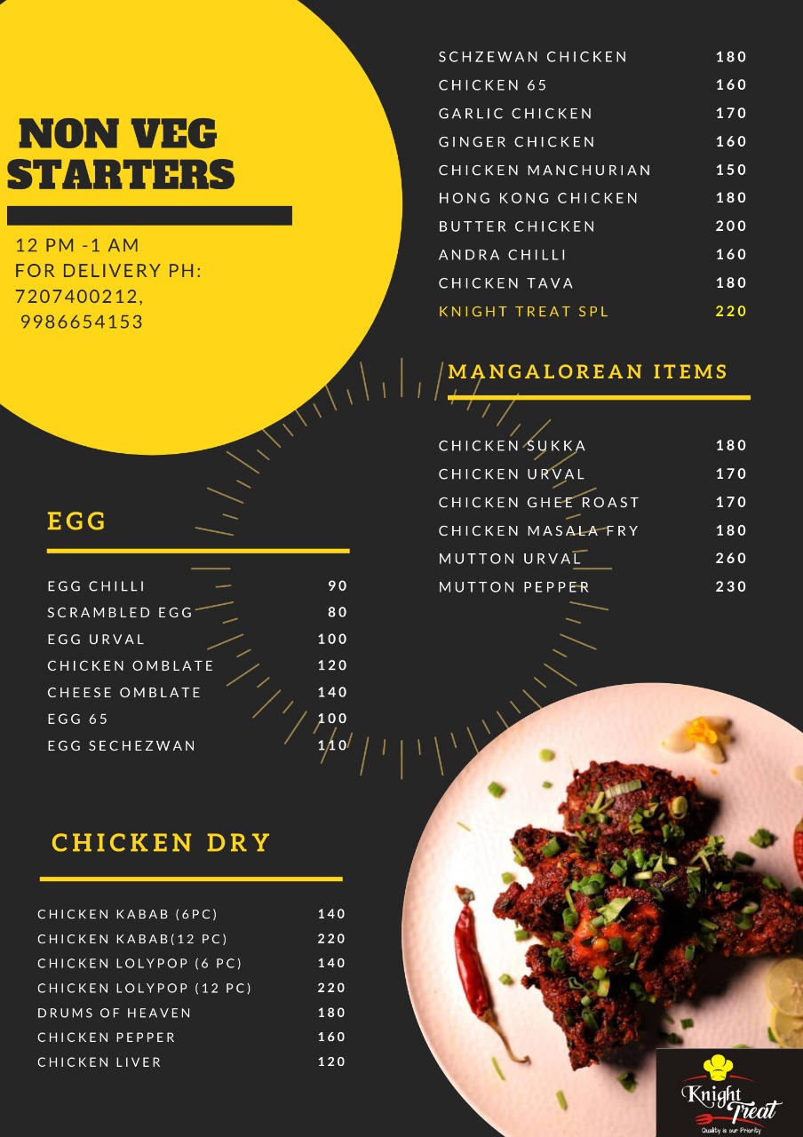 5 (1) KNIGHT TREAT : Loyala Boys Hostel, Jail Road, Kodialbail, Mangalore : : : 7204700212, 9986654153, 9739774670 FOOD HOME DELIVERY, ( CITY LIMIT), MINIMUM ORDER 200 RS, ABOVE 500RS FREE DELIVERY, BULK ORDER Did you find this Ad helpful? Click on a...