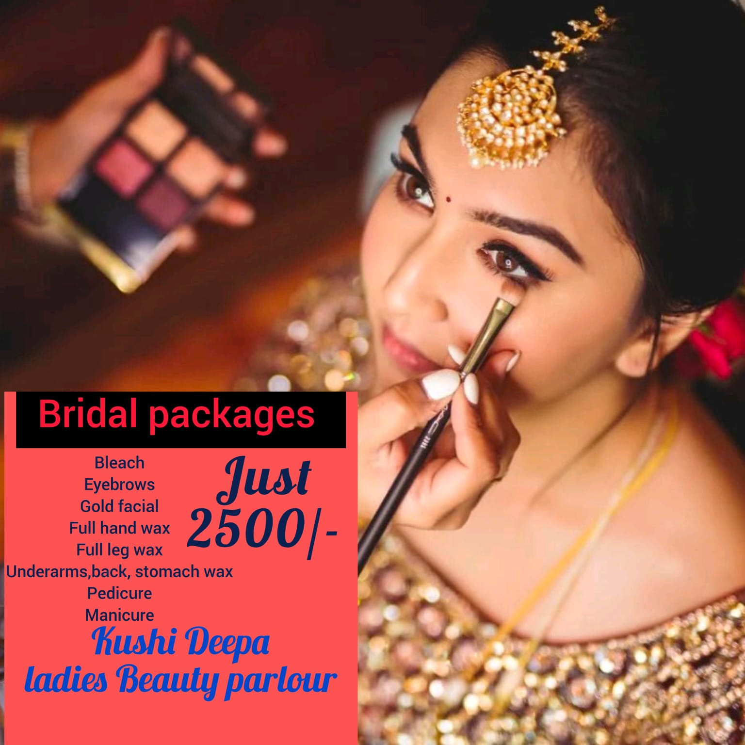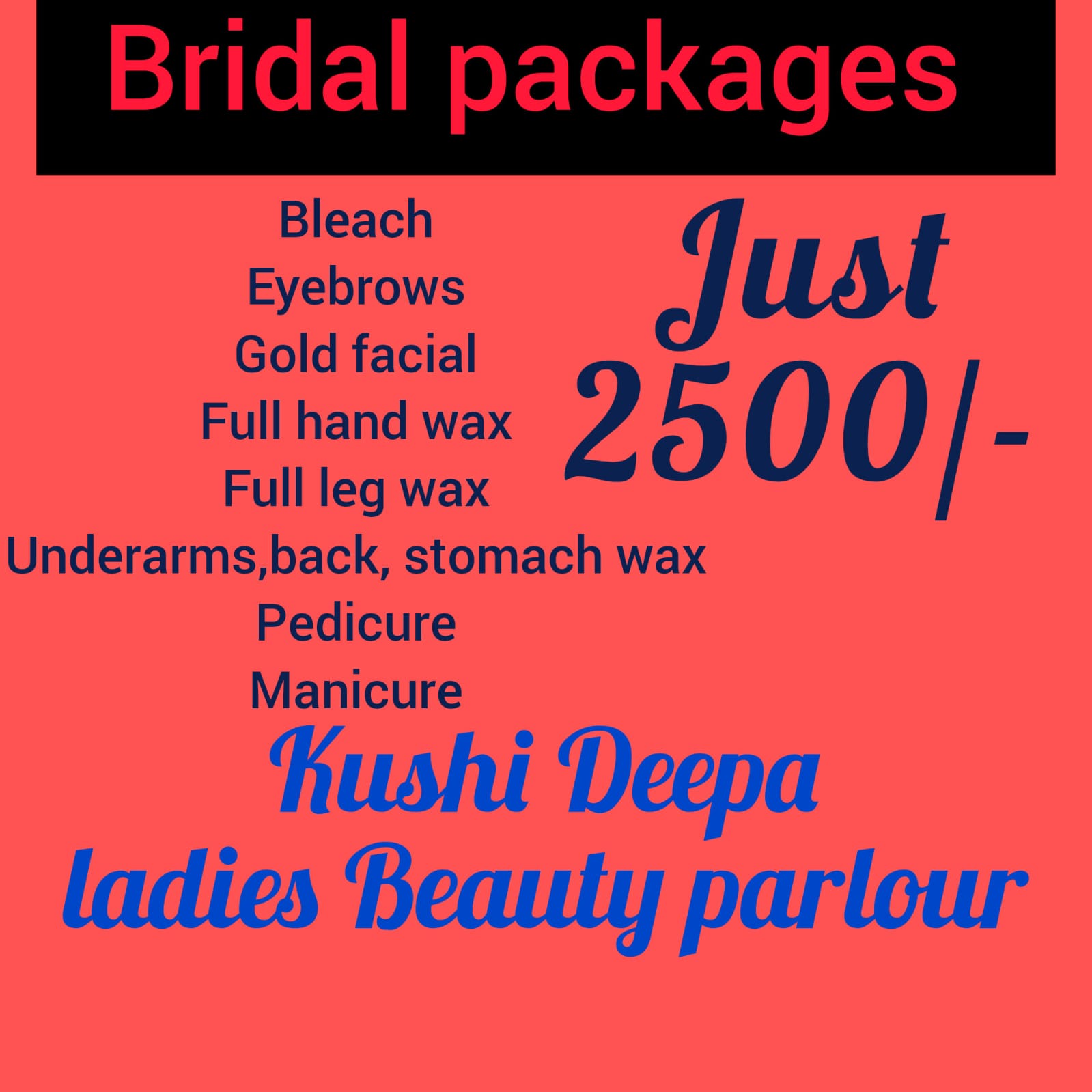 BEAUTY PARLOUR, TIMINGS : 10.00AM TO 7.00PM, SUNDAY HOLIDAY.