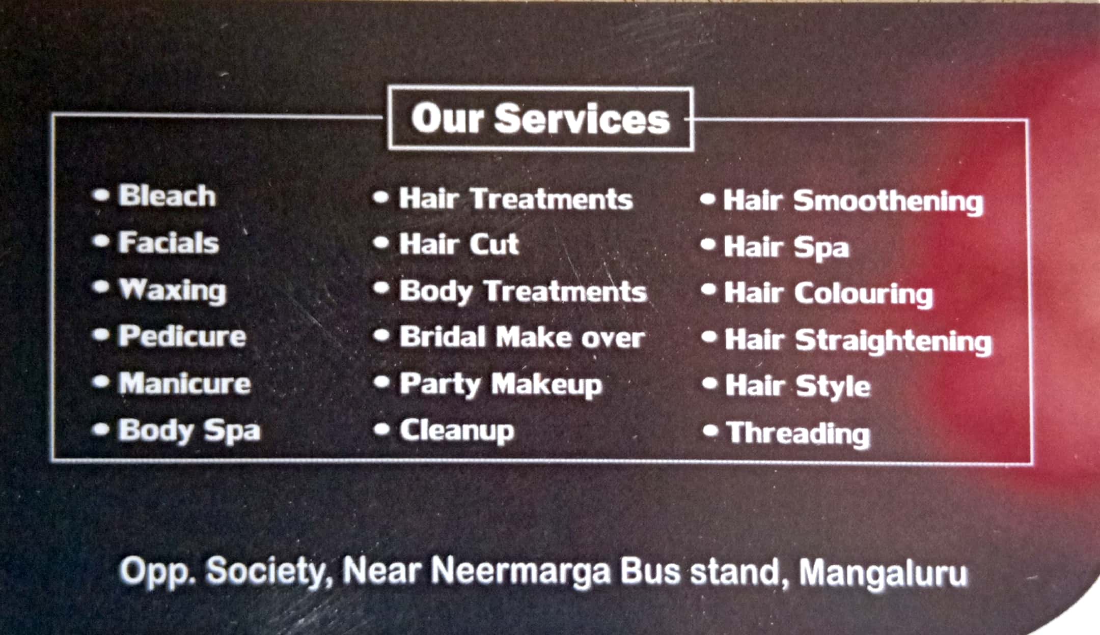 0 (0) LAVI’S PROFESSIONAL BEAUTY PARLOUR : Opp. Society, Near Neermarga bus stand, Mangalore : : : 9740839509 PROFESSIONAL BEAUTY PARLOUR, HAIR, SKIN, BRIDAL, ONLY FOR LADIES Did you find this Ad helpful? Click on a star to rate it! Submit Rati...
