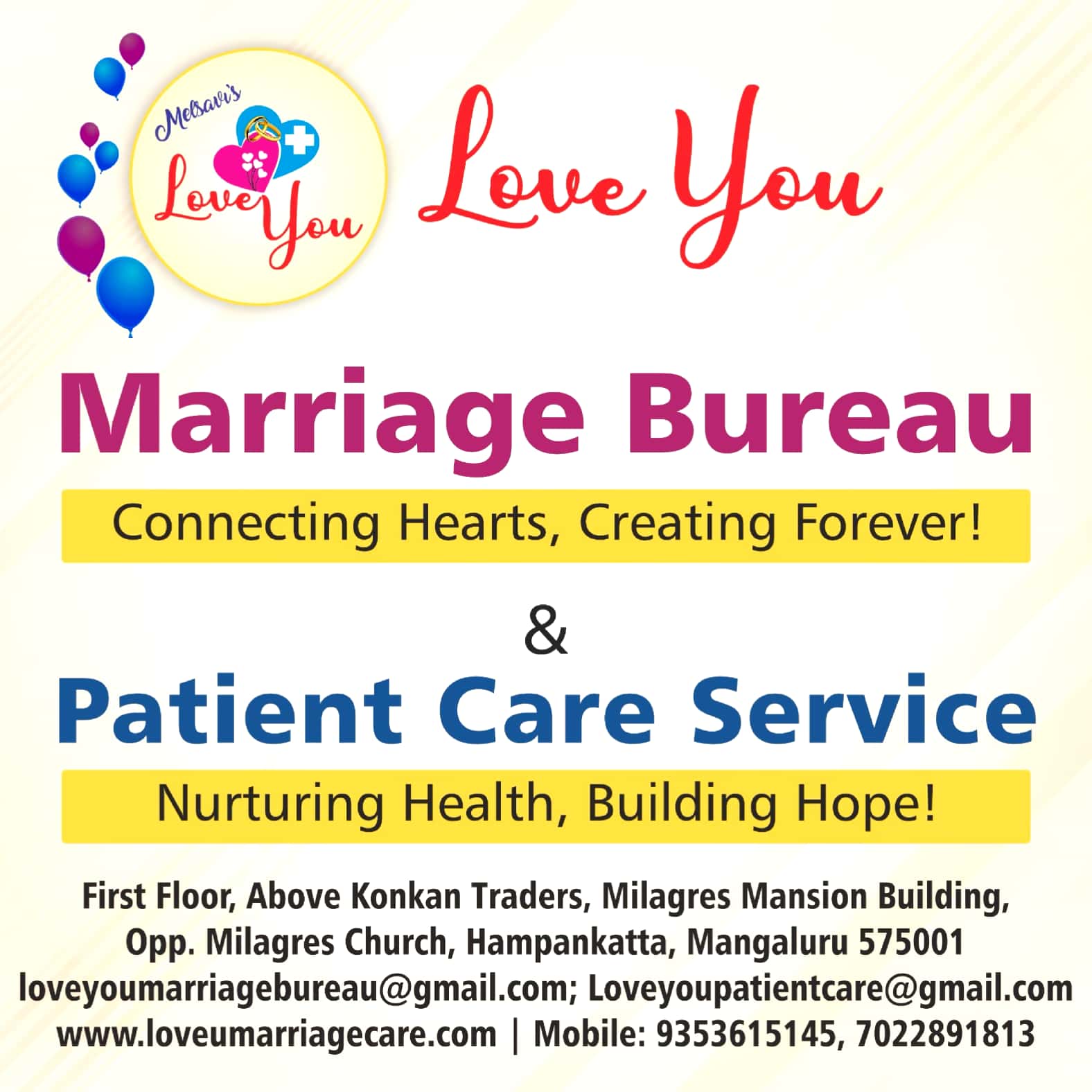 MARRIAGE BUREAU, HOME NURSE SERVICE, PATIENT CARE SERVICE. TIMINGS : 9.30AM TO 6.00PM, SUNDAY HOLIDAY.