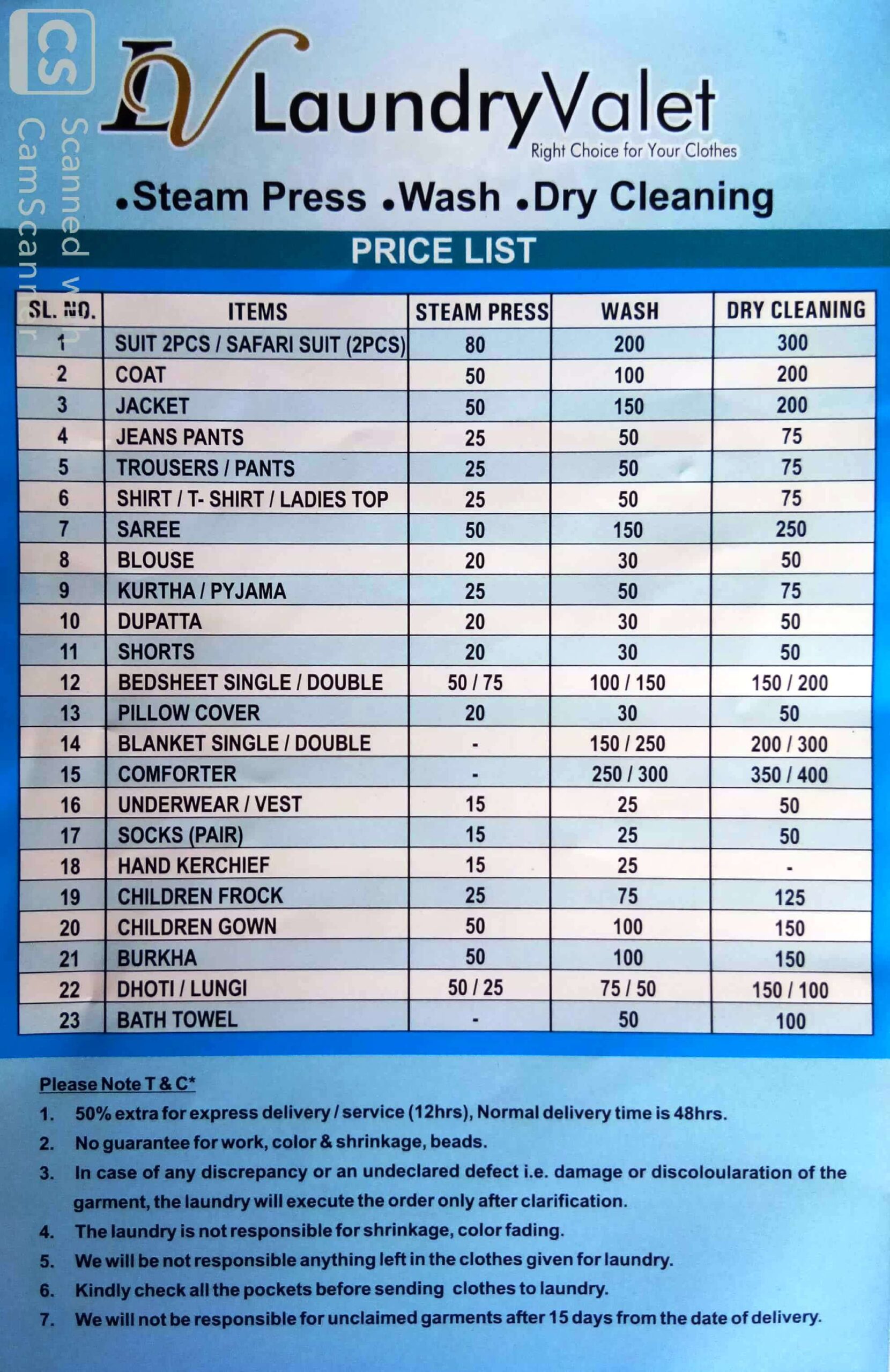 : DRY CLEANING , WASHING , STEAM PRESS , CARPET WASH , CURTAINS WASH.