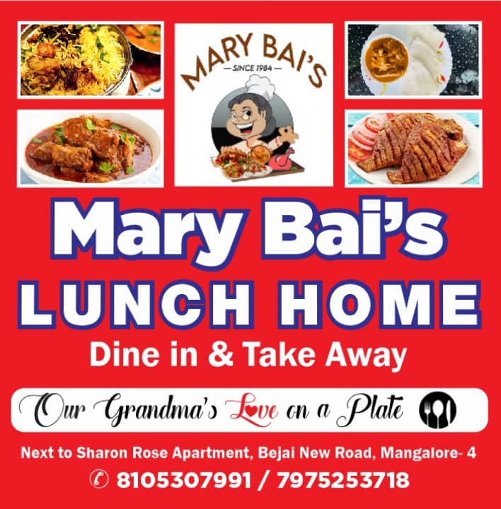 5 (1) MARY BAI’S LUNCH HOME : Next To Sharon Rose Apartment, Bejai New Road, Bejai, Mangalore : : : 8105307991, 7975253718 RESTAURANT, FOOD, BULK ORDER, HOME DELIVERY, CITY LIMIT, ABOVE Rs 500 FREE DELIVERY WITHIN 2 KMS…TIMINGS 11.00AM T...