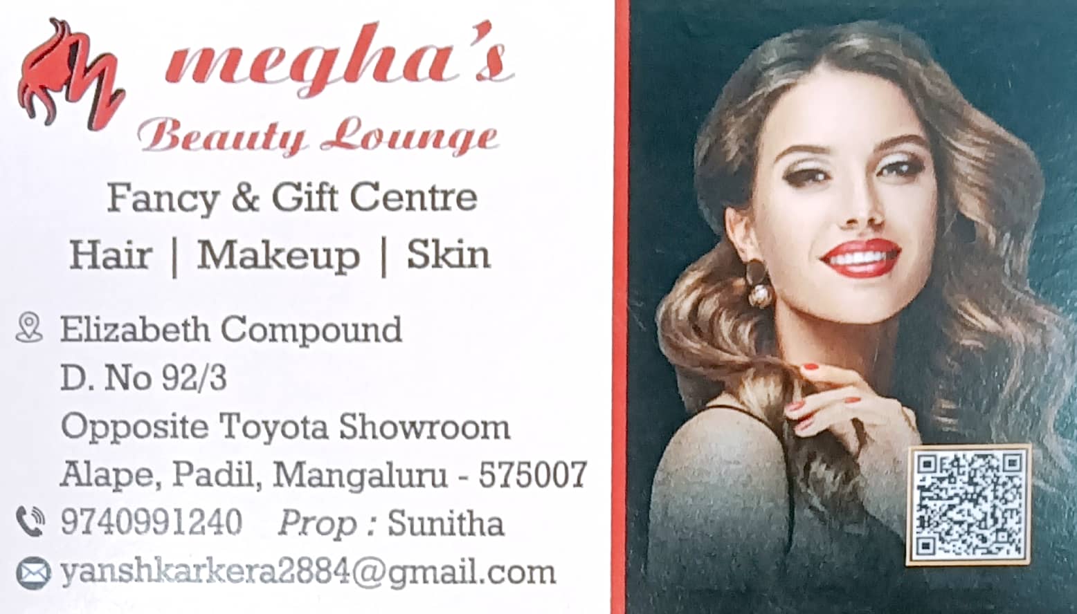 5 (1) MEGHA’S BEAUTY LOUNGE : #92/3, Elizabeth Compund, Opp Toyota Showroom, Alape, Padil, Mangalore : : : 9740991240 BEAUTY PARLOUR, MAKEUP ARTIST, RENTAL JEWELRY, FANCY, GIFT CENTRE.TIMINGS: 9.00AM TO 8.00PM Did you find this Ad helpful? Cli...