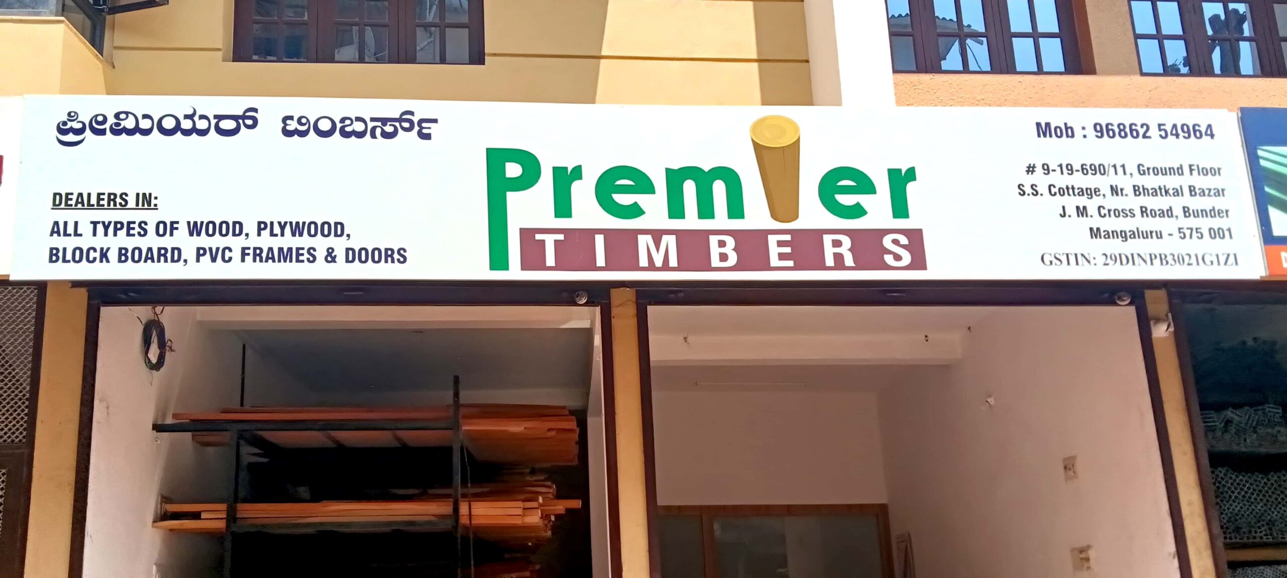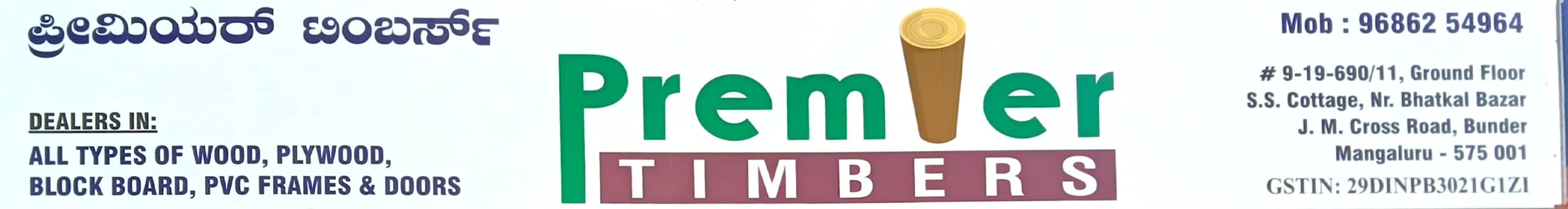 0 (0) PREMIER TIMBERS : # 9-19-690/11, Ground Floor, SS Cottage, Near Bhatkal Bazar, JM Cross Road, Bunder, Mangalore : : : 9686254964 TIMBER, PLYWOOD, DOORS, BLOCK BOARDS.TIMINGS : 9.00AM TO 6.30PM, SUNDAY HOLIDAY. Did you find this Ad helpful? Clic...