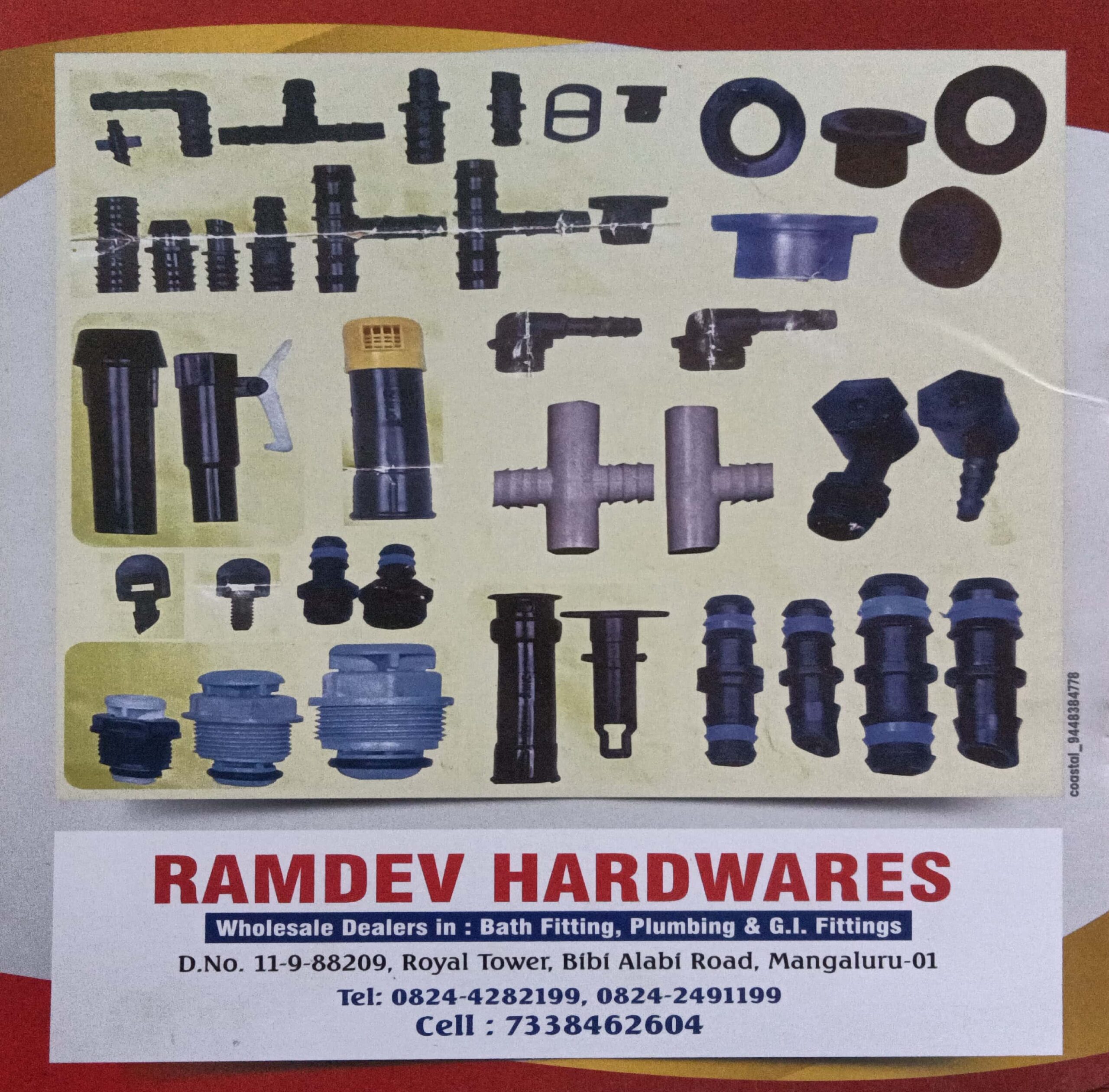 0 (0) RAMADEV HARDWARES : D No 11-9-88209, JK Complex, Bibi Allabi Road, Bunder, Mangalore 575001 : : : 0824-4282199, 7338462604 PLUMBING ITEM, TIMINGS: 8.30AM TO 8.30PM, SUNDAY ; 8.30AM TO 1.30PM Did you find this Ad helpful? Click on a star to rate...