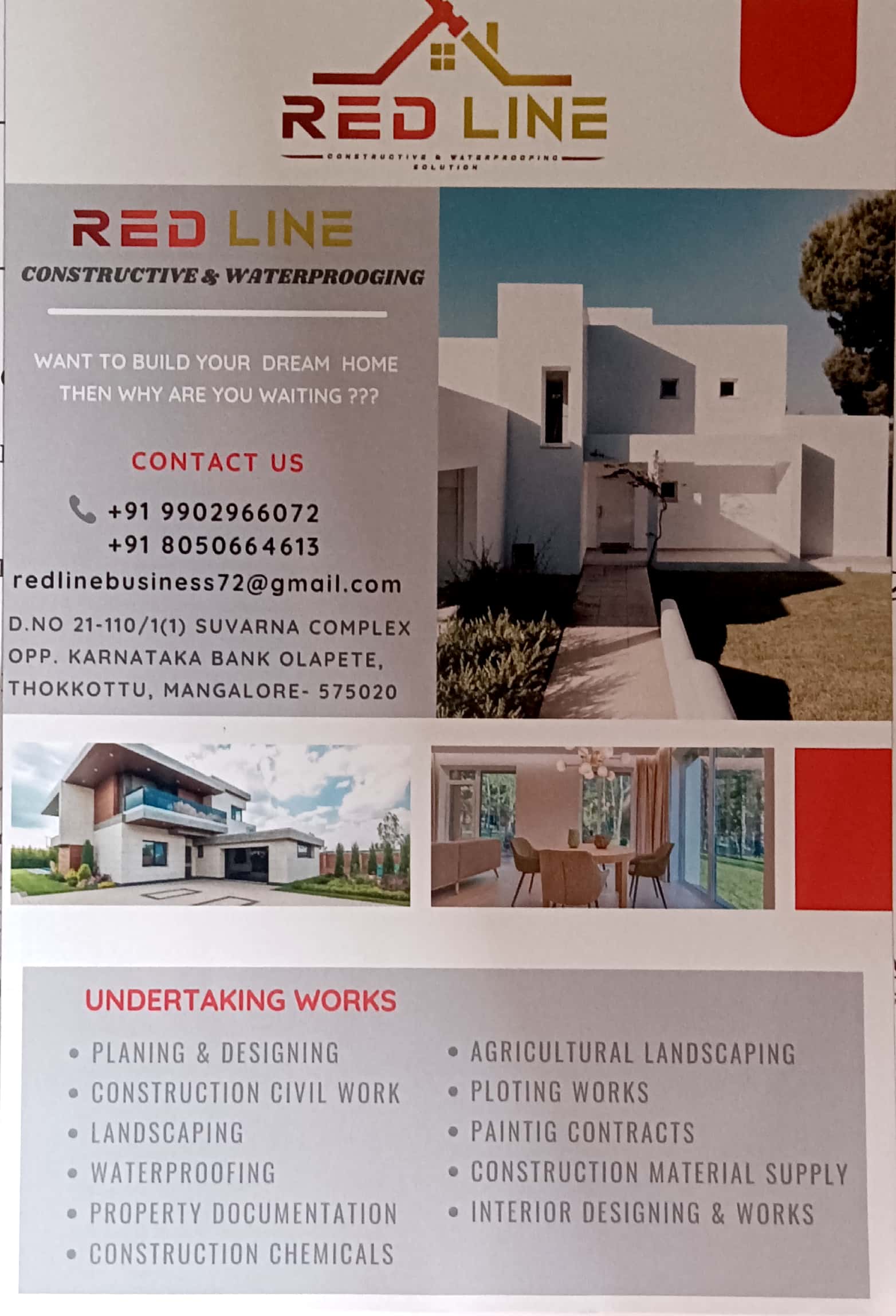 WATER PROOFING, CONSTRUCTION, INTERIOR DESINER, CONSTRUCTION CHEMICALS, AGRICULTURAL LAND SCAPING, PAINTING CONTRACTOR, PLOTING WORK, CONSTRUCT MATERIAL, DESIGNING, PLANNING.