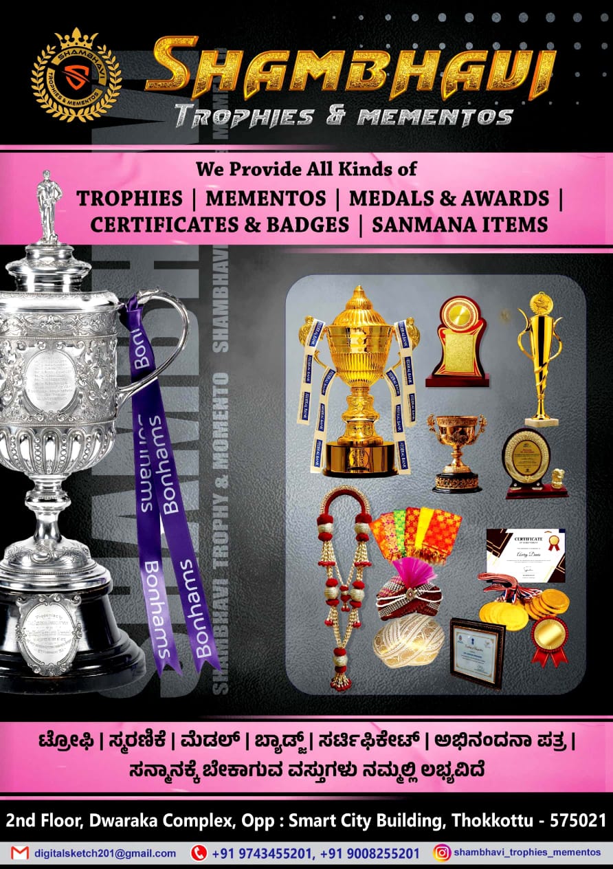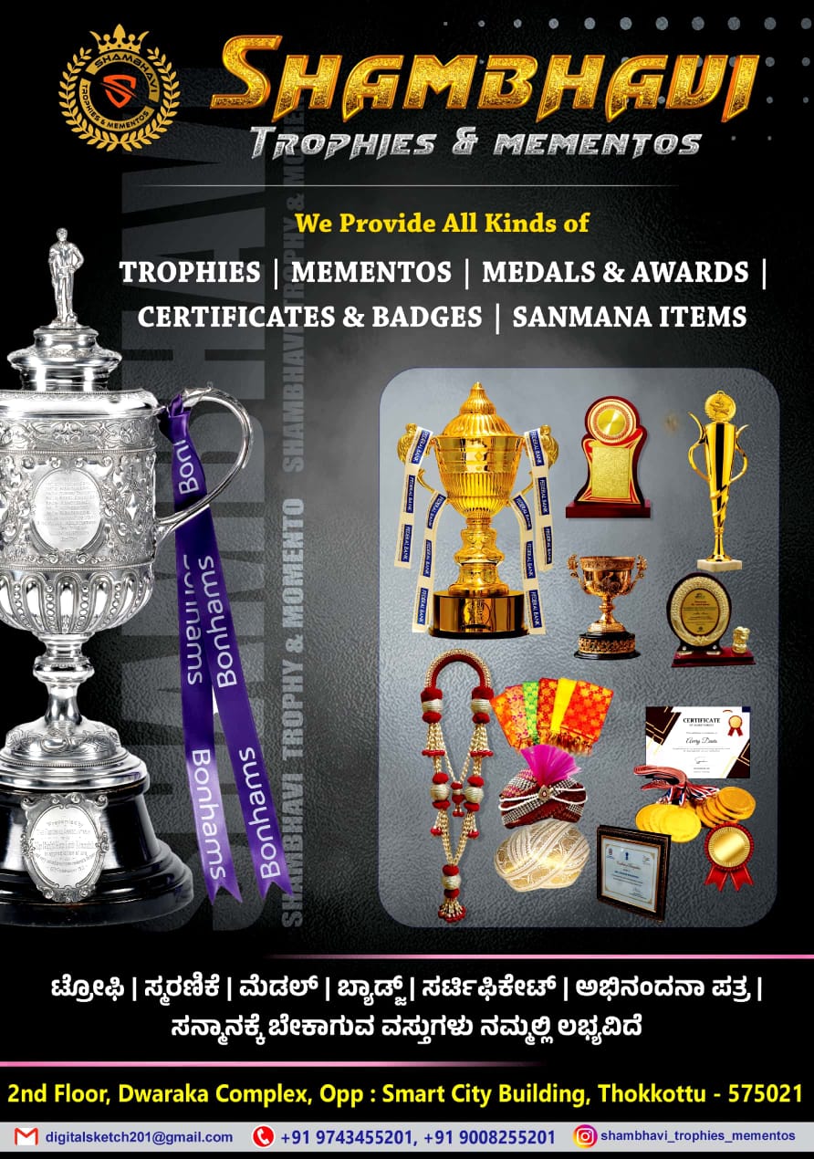 0 (0) SHAMBHAVI TROPHIES & MEMENTOS : 2nd Floor, Dwaraka Complex, Opp Smart City Building, Thokkottu, Mangalore : : : 9743455201 TROPHIES, MEMENTOS. TIMINGS : 10.00AM TO 9.00PM, SUNDAY HOLIDAY. Did you find this Ad helpful? Click on a star to rat...