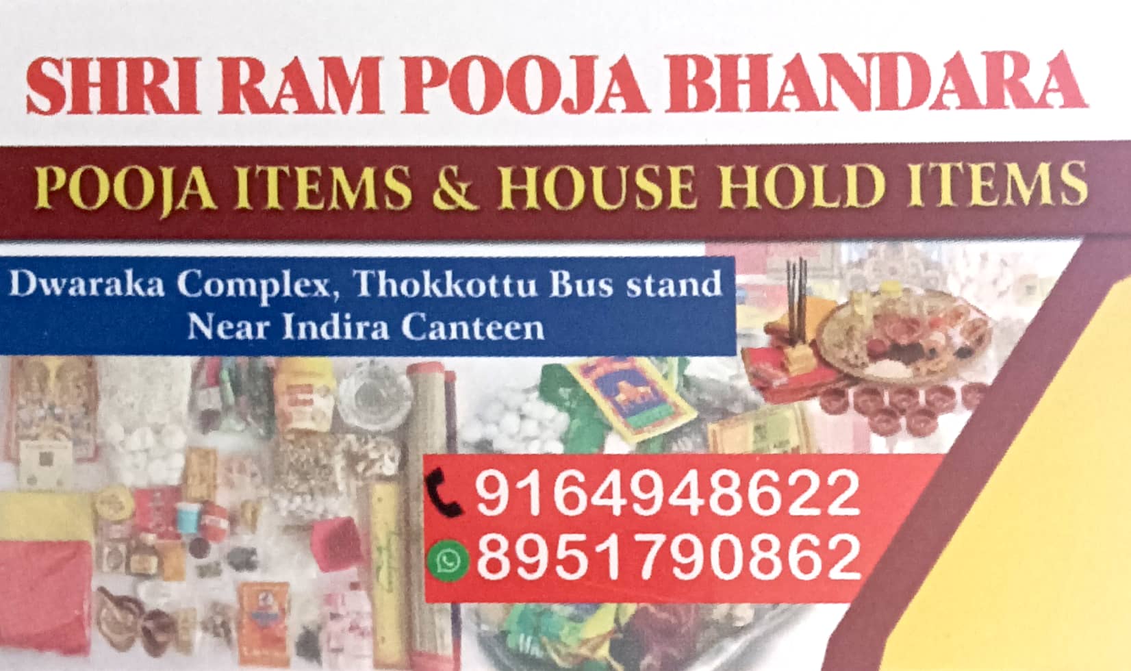 POOJA ITEMS, HOUSE HOLD ITEMS. TIMINGS : 8.00AM TO 7.30PM.