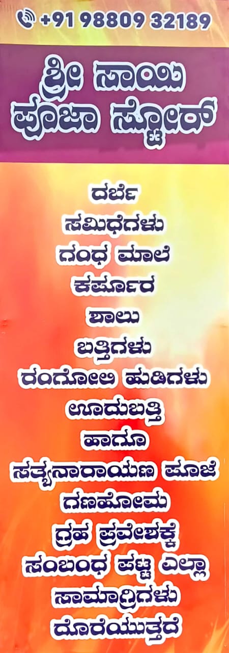 POOJA MATERIALS, POOJA STORE. TIMINGS : 7.30AM TO 8.00PM