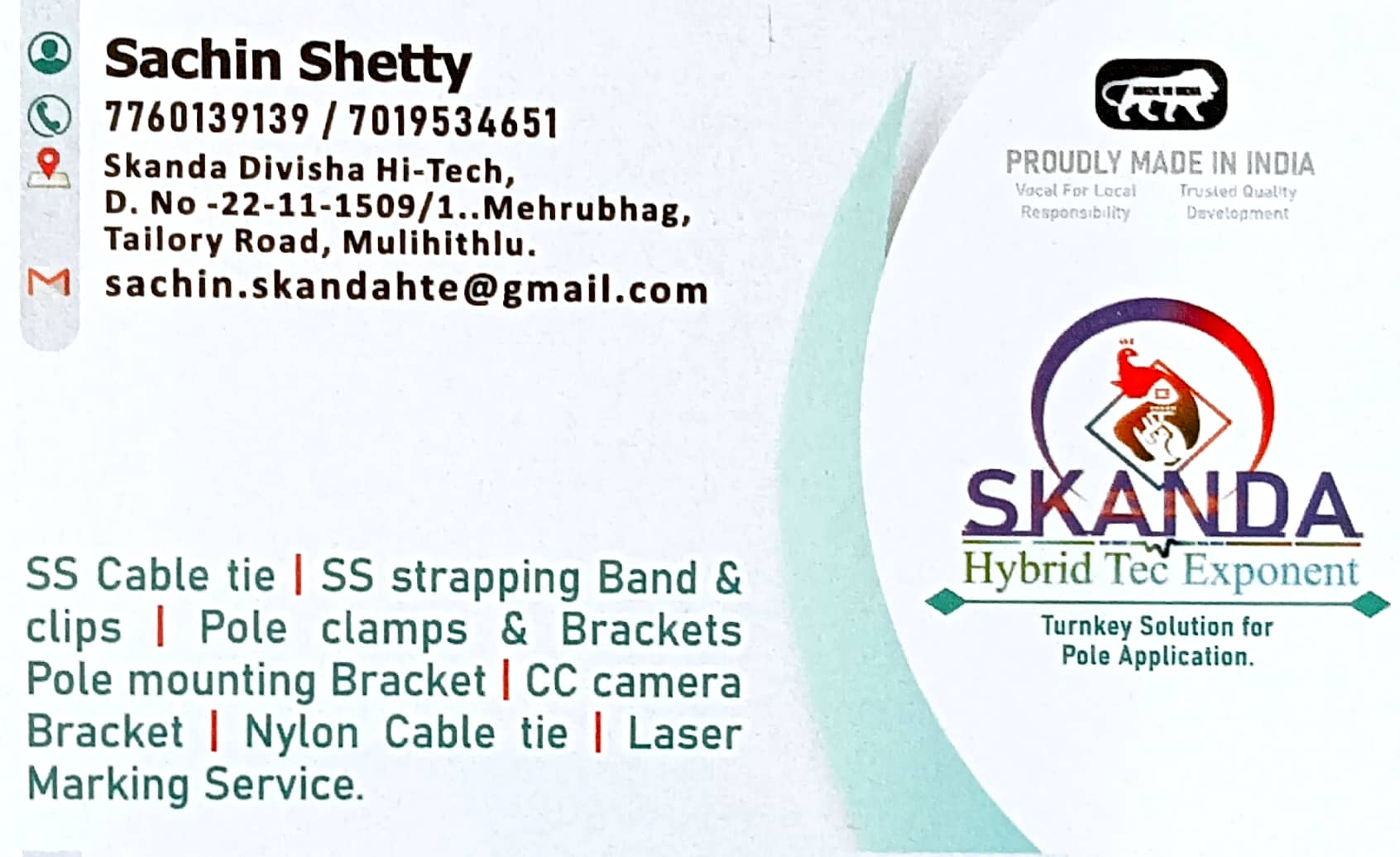 5 (1) SKANDA DIVISHA HI-TECH : Mulihithlu Road, Bolar, Mangalore : : : 7760139139, 7019534651 LASER MARKING SERVICE, RESIN ART, SS CABLE TIE, CC CAMERA BRACKET, POLE CLAMPS & BRACKETS, SS STRAPPING BAND. TIMINGS : 9.30AM TO 7.00PM. Did you find t...