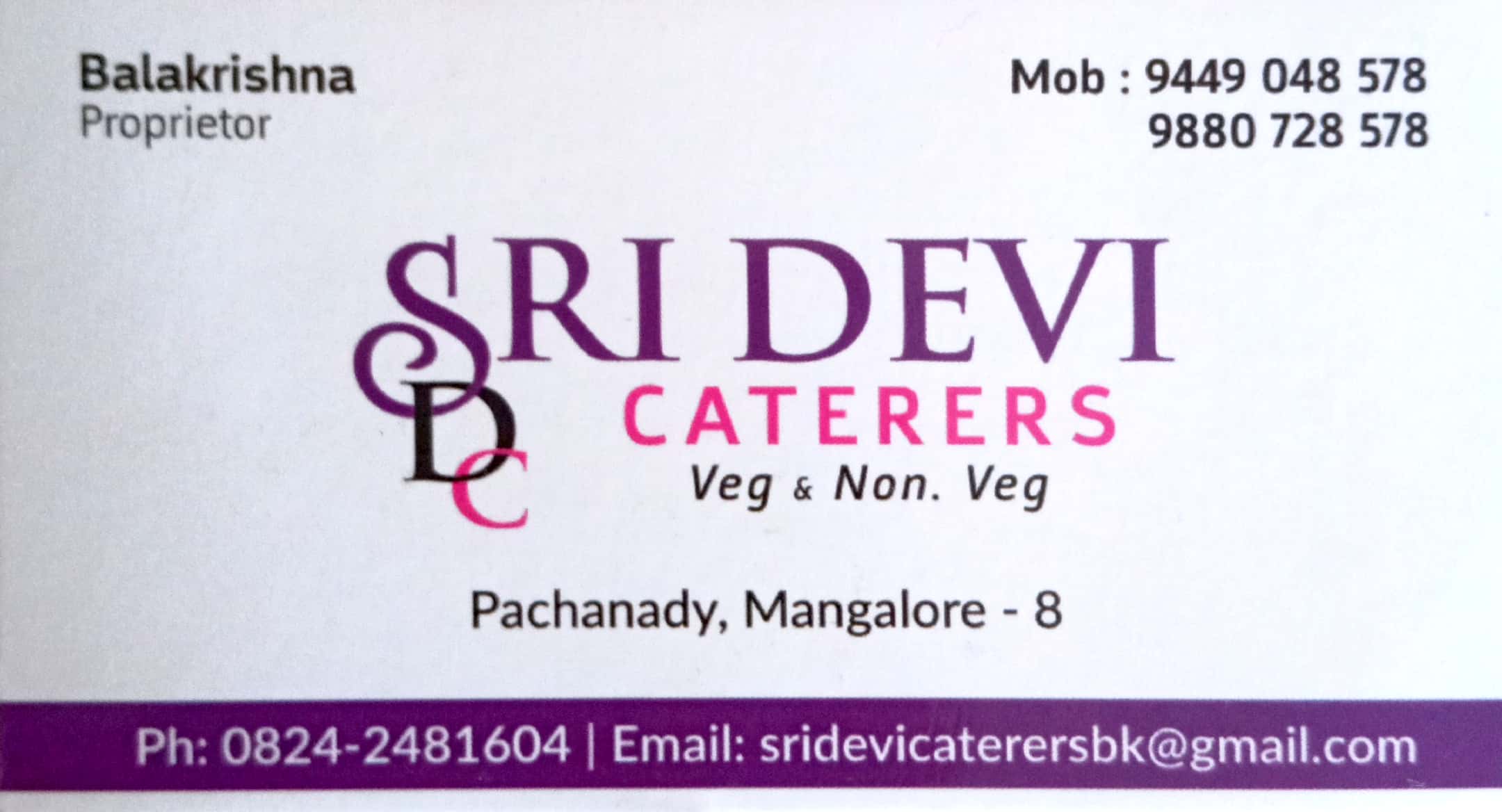 5 (1) SRI DEVI ARRANGERS : Near River Bridge,Pachanady, Mangalore-575008 : : : 9449048578, 9880728578 CATERERS, ARRANGERS Did you find this Ad helpful? Click on a star to rate it! Submit Rating Thank you for Voting! No votes so far! Be the first to r...