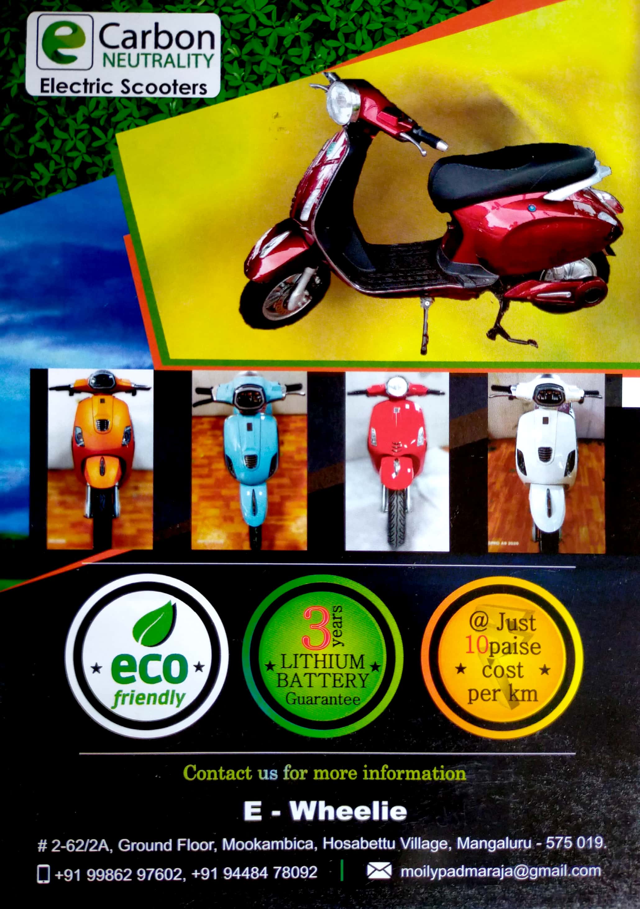 0 (0) SRI DURGA E VEHICLE DISTRIBUTORS : E WHEELIE, # 2-62/2A, Ground Floor, Mookambika, Hosabettu , Mangalore- 575019 : : : 6364965353, 9448478092, 9986297602, ELECTRICAL SCOOTERS, ELECTRIC VEHICLES, Did you find this Ad helpful? Click on a star to ...