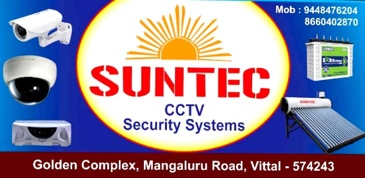 0 (0) SUNTEC CCTV SECURITY SYSTEMS : Golden Complex, Mangaluru Road, Vittal- 574243 : : :9448476204, 8660402870 CCTV, SOLAR, BATTERIES, INVERTER, SALES & SERVICES Did you find this Ad helpful? Click on a star to rate it! Submit Rating Thank you f...