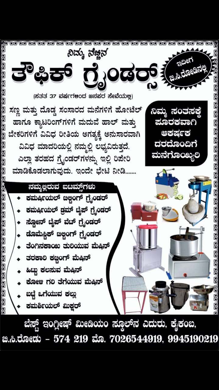 GRINDERS & COMMERCIAL KITCHEN EQUIPMENT’S,COCONUT SCRAPER, CLOTH WASHING STONE,