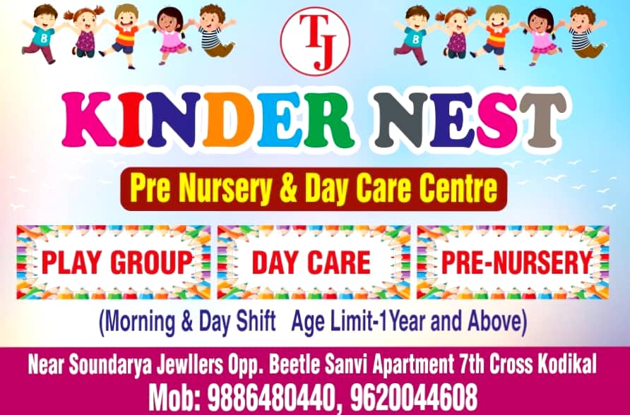 0 (0) TJ KINDER NEST : Near Soundarya Jewellers, Opp Beetle Sanvi Apartment, 7th Cross Kodikal, Mangalore : : : 9886480440, 9620044608 PLAY SCHOOL, DAY CARE, PRE SCHOOL, NURSERY. TIMINGS ;8.30AM TO 6.30PM. Did you find this Ad helpful? Click on a sta...
