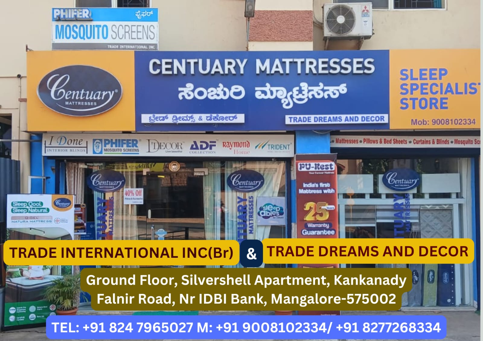 0 (0) TRADE INTERNATIONAL INC : G-2, Inland Arcade, 2-7/221, Airport Road, Padavinangady, Konchady, Mangalore . Branch: Silvershell Apartment, Falnir. : : : 9008102334, 8197675334, 8277482034, MATTRESS, MOSQUITO SCREENS, BLINDS, CURTAINS. Did you f...
