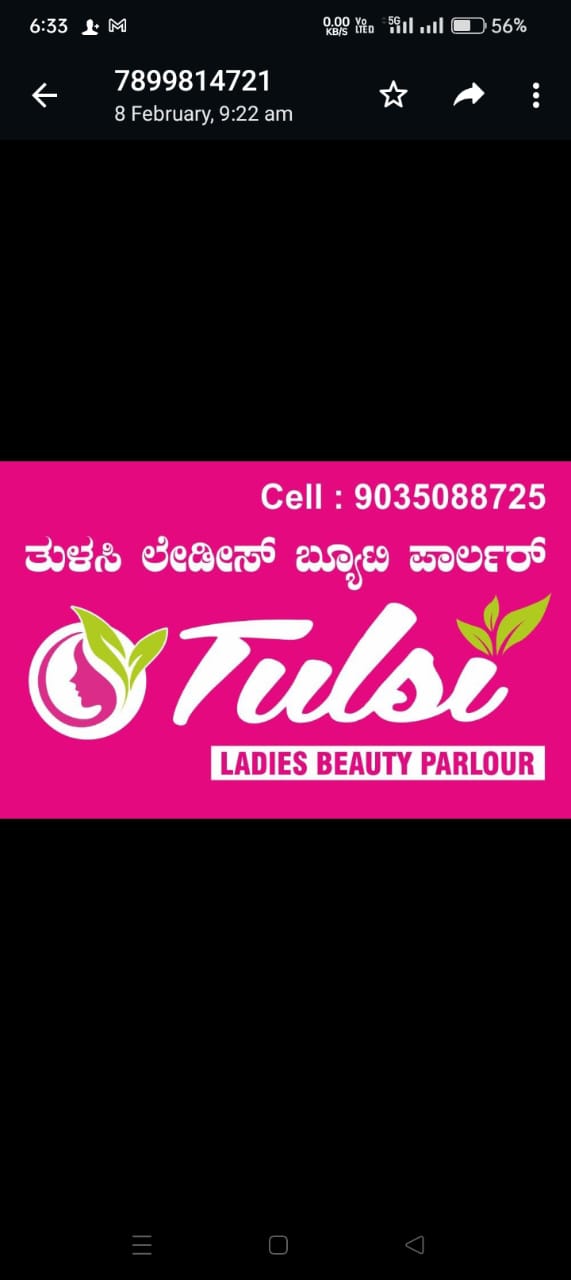 0 (0) TULSI LADIES BEAUTY PARLOUR : Shop No 6, Upper Ground Floor, Jasmine Pride, Deralakatte, Mangalore : : : 9035088725 BEAUTY PRLOUR. TIMINGS : 9.45AM TO 7.00PM, SUNDAY ON APPOINTMENT Did you find this Ad helpful? Click on a star to rate it! Submi...