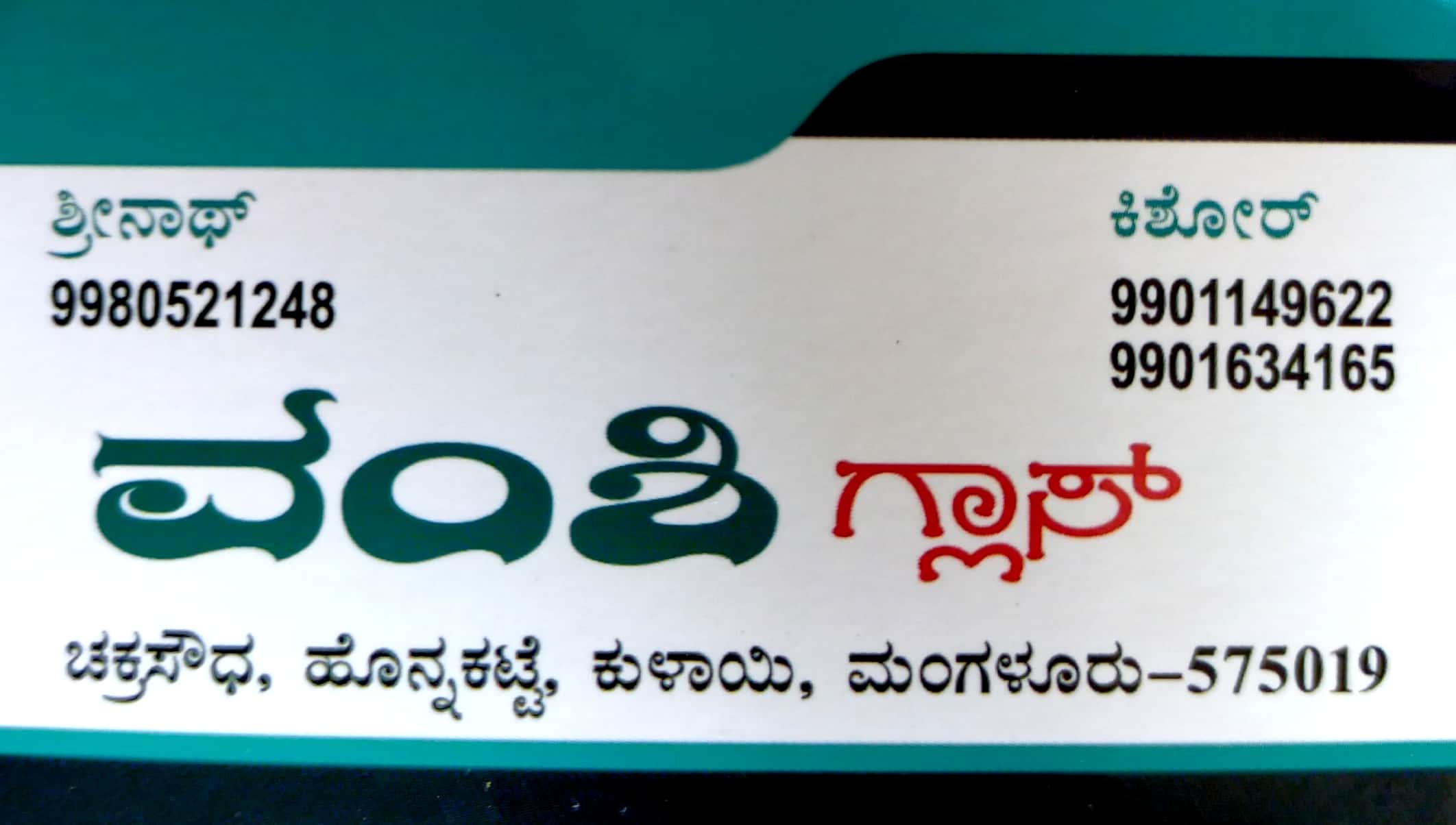 0 (0) VAMSHI GLASS : Chakrasoudha, Honnekatte, Kulai, Mangalore 575019 : : : 9980521248, 9901149622 GLASS WORK, CUTTING, ECHTING Did you find this Ad helpful? Click on a star to rate it! Submit Rating Thank you for Voting! No votes so far! Be the fir...