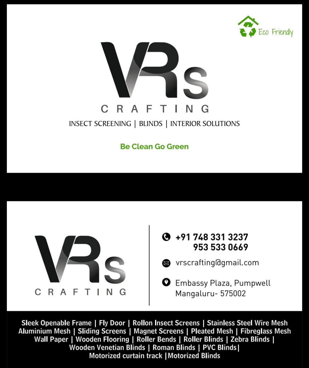 5 (1) VRS CRAFTING : Embassy Plaza, Pumpwell, Mangaluru- 575002 : vrscrafting@gmail.com : : 9535330669, 7483313237 INSECT SCREENING, BLINDS, WALL PAPER, FLOORING, INTERIOR SOLUTION Did you find this Ad helpful? Click on a star to rate it! Submit Rat...