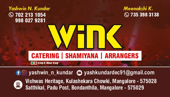 5 (2) WINK CATERING SHAMIYANA ARRANGERS- ENNA EVENT SOLUTIONS : Ground Floor, Vishwas Heritage, Kulshekara Chowki, Mangalore : : : 7022131054, 9980279281, 7353983138 EVENT ORGANIZER Did you find this Ad helpful? Click on a star to rate it! Submit Rat...